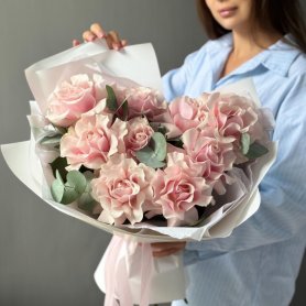 Французские розы 9шт с эвкалиптом «Аристократка»