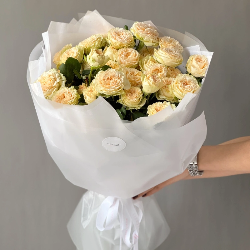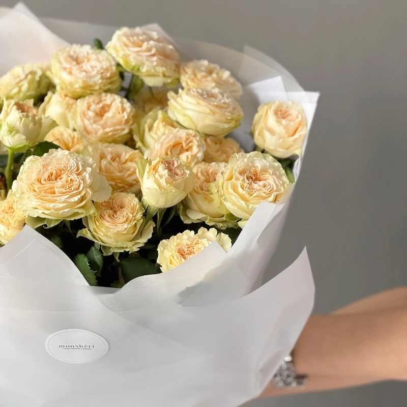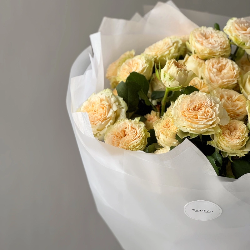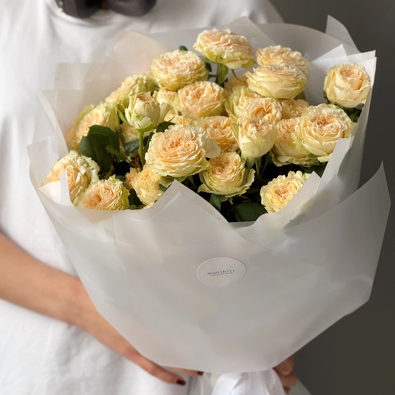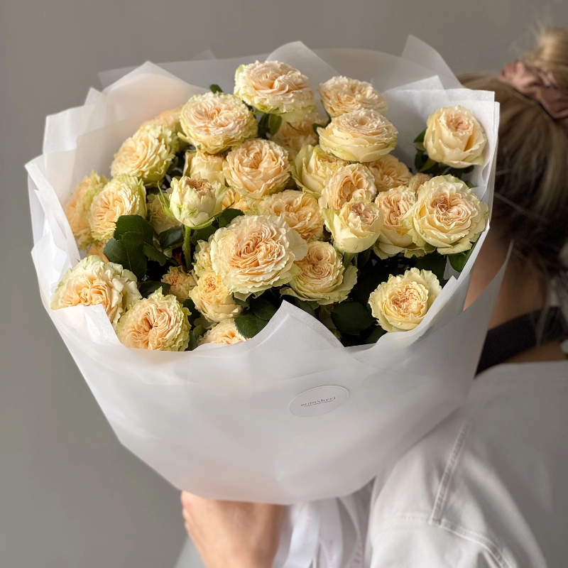 Розы кустовые пионовидные Саммер Роуз в нежной упаковке, такие оттенки цветов создают уют и теплому в интерьере и на душе 💛