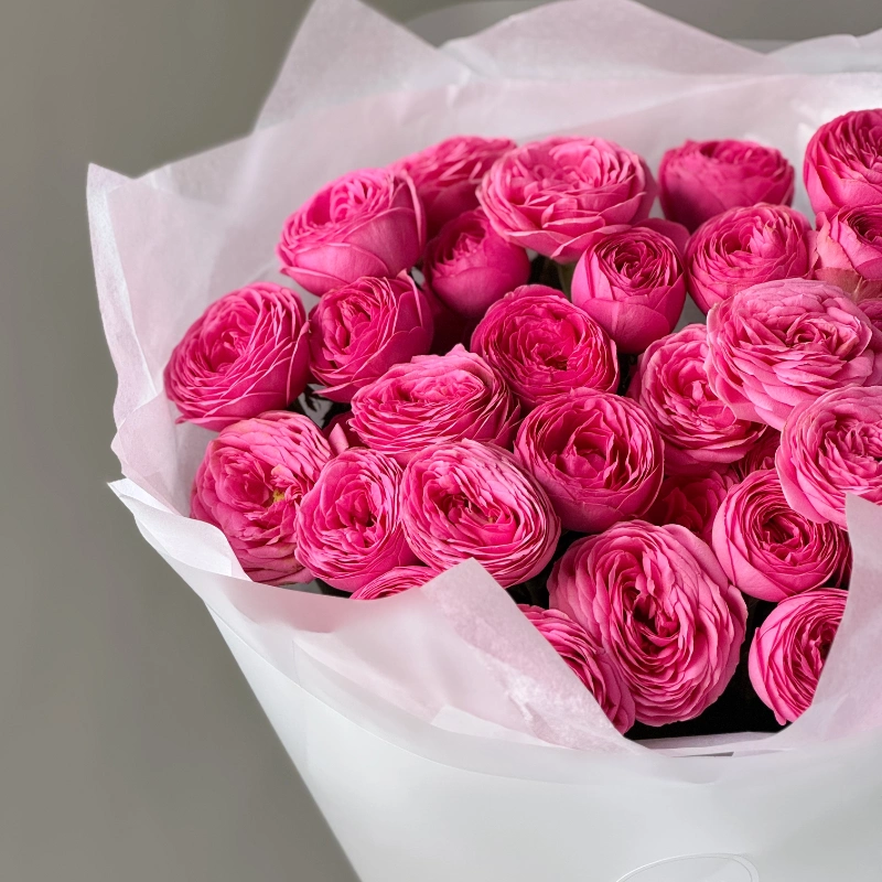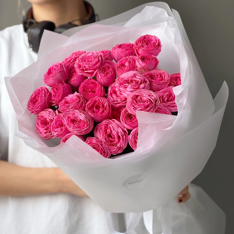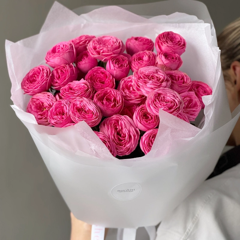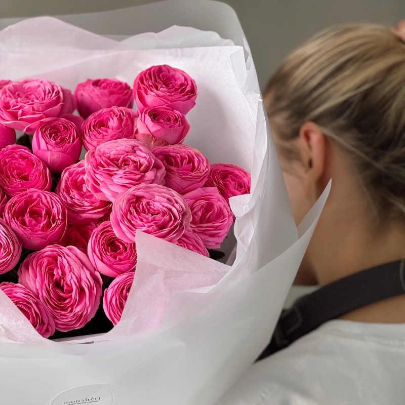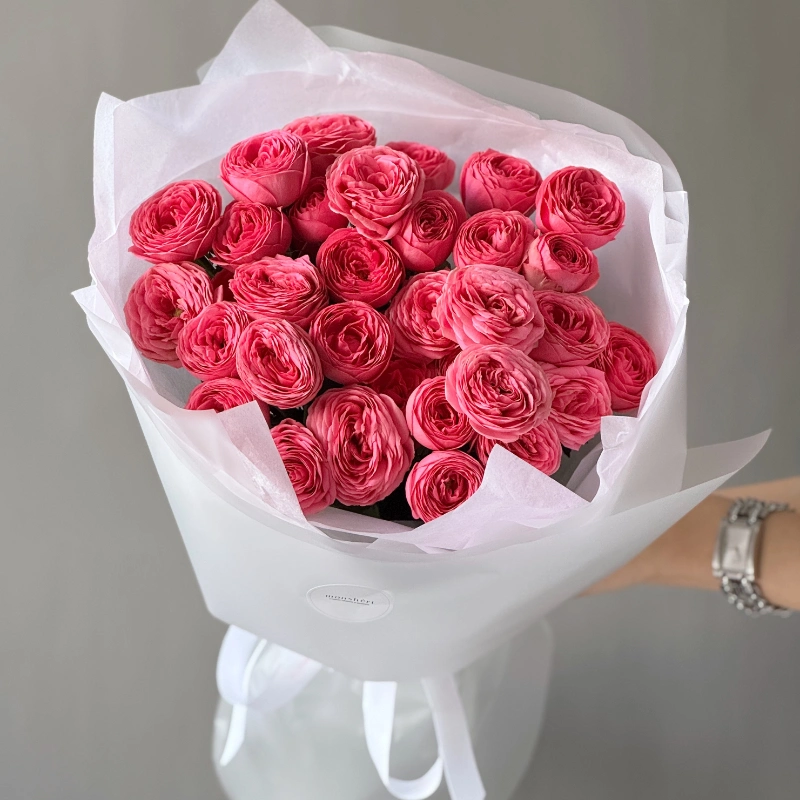 Монобукет из французских роз бело-розовый