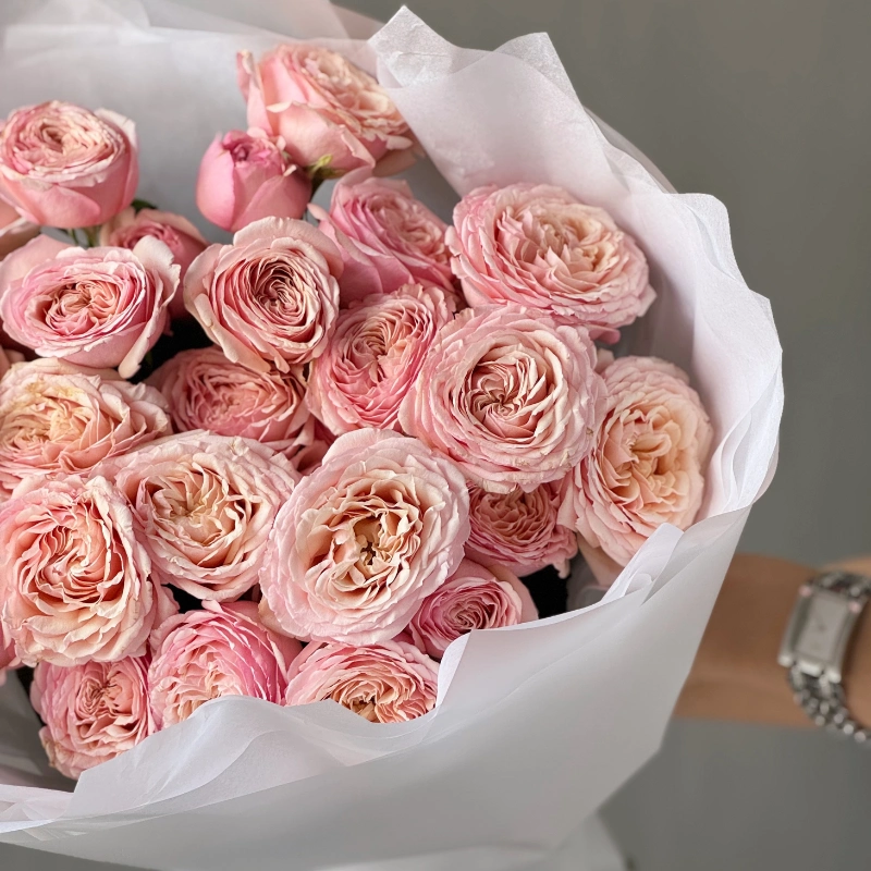 Букет цветов из кустовых пионовидных роз Тендрессе