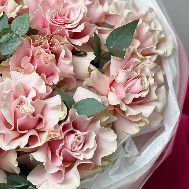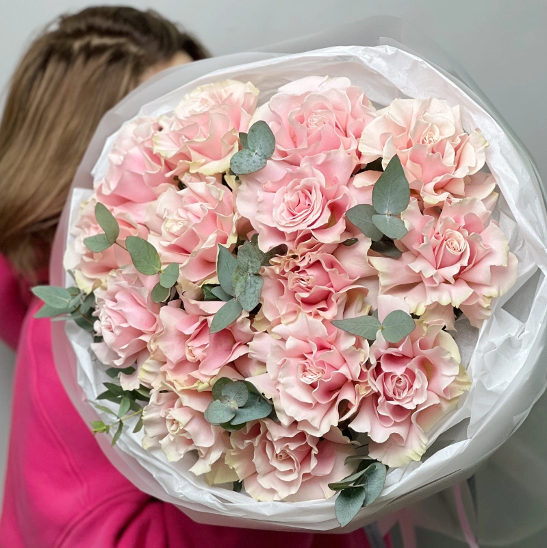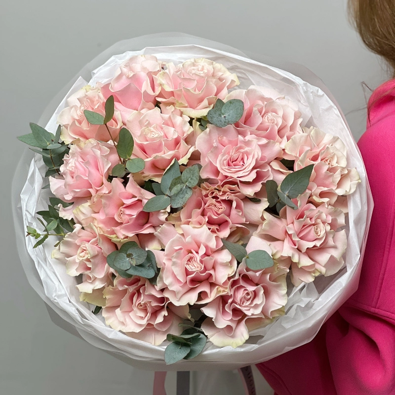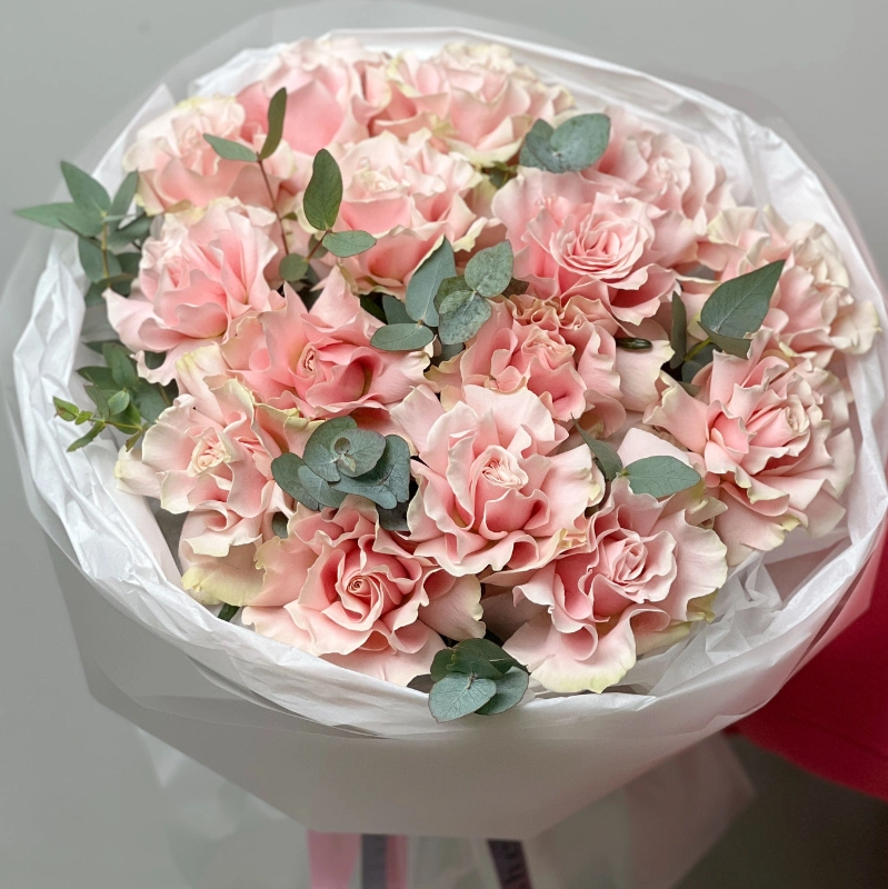 Любимой 💗5 кустовых роз тендрессе с эвкалиптом
