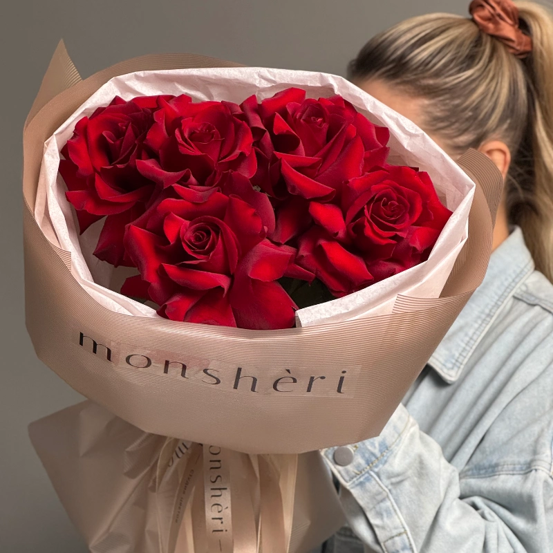 Красные розы 5 в стильной упаковке — классика которая пойдет на любой повод и без ❤️