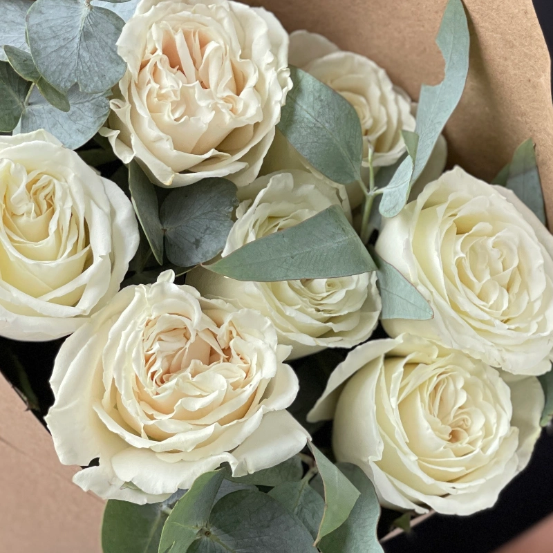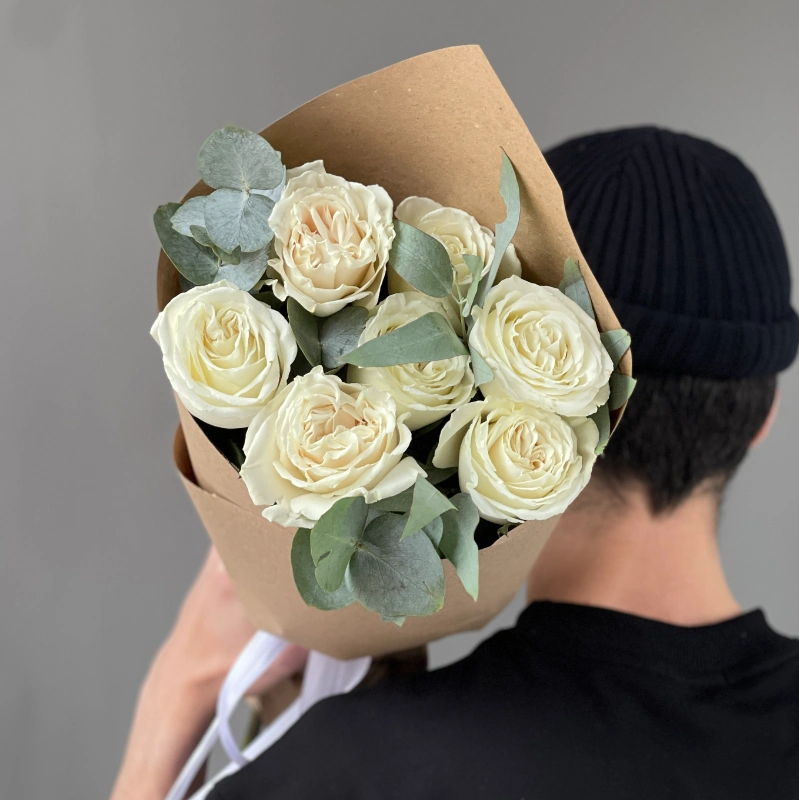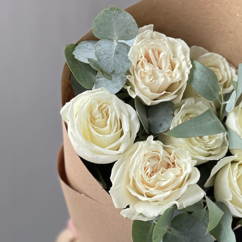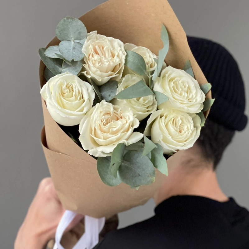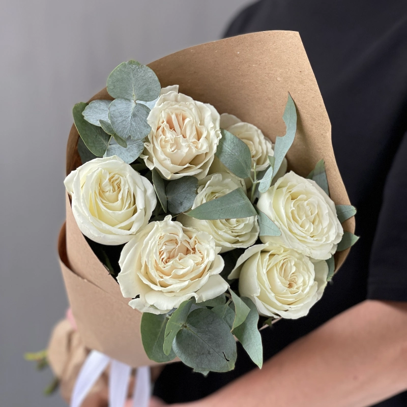 ГлавнаяКаталогРозыБелые розы Плая Бланка в крафте