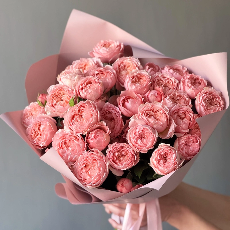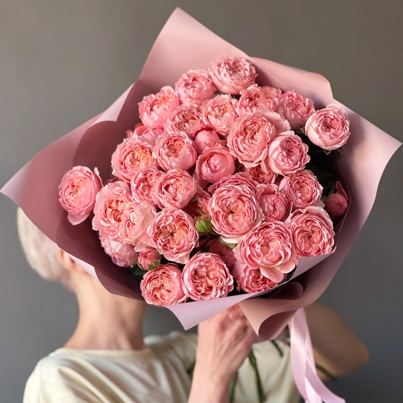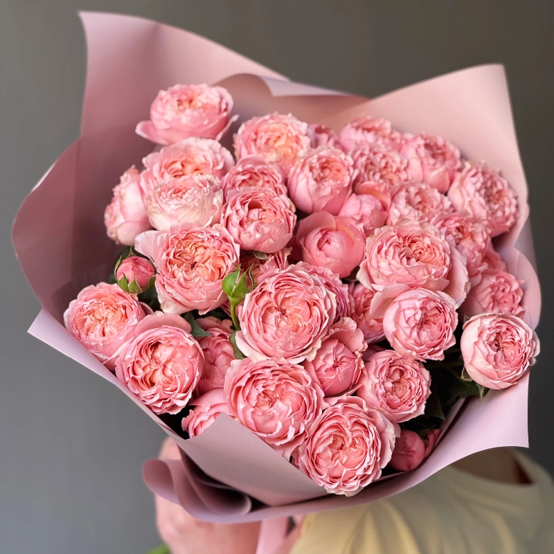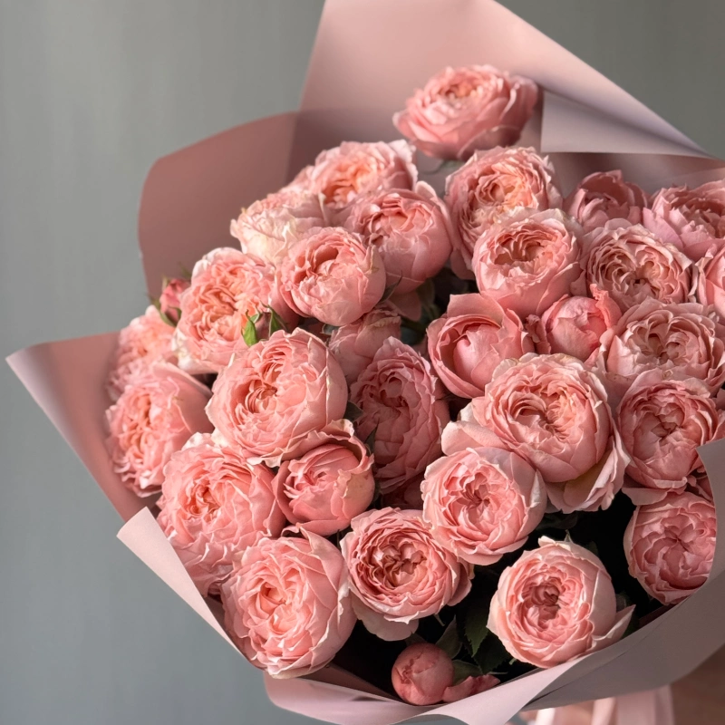 Пионовидные розы сорта Джульетта в нежном оттенке розовой пудры