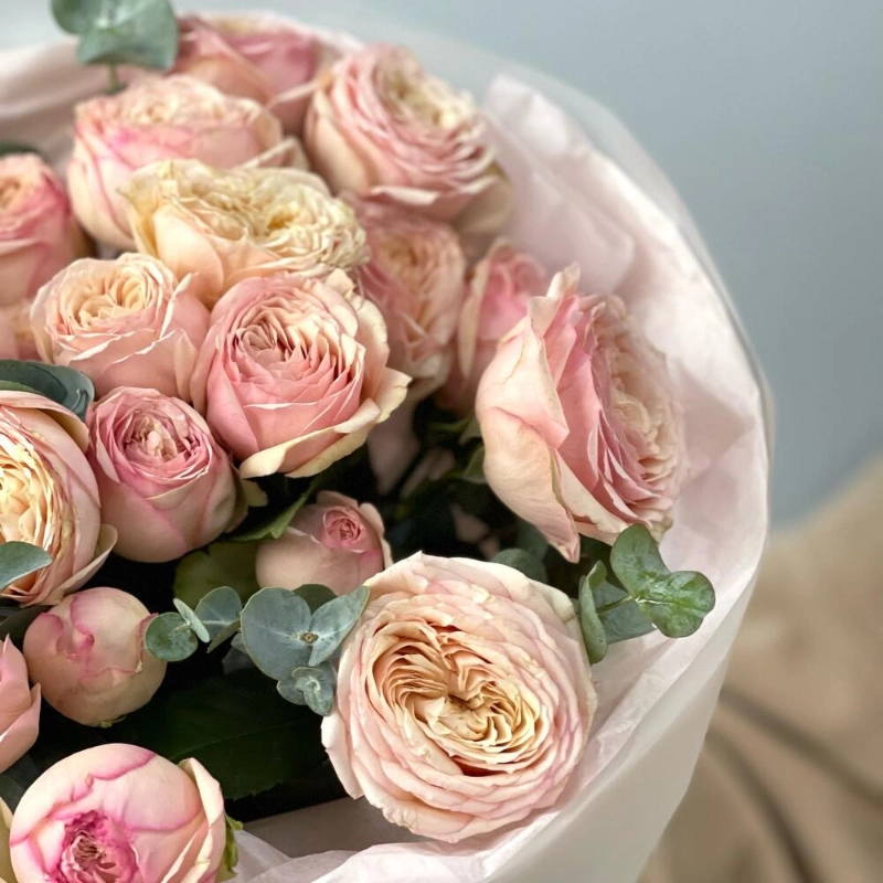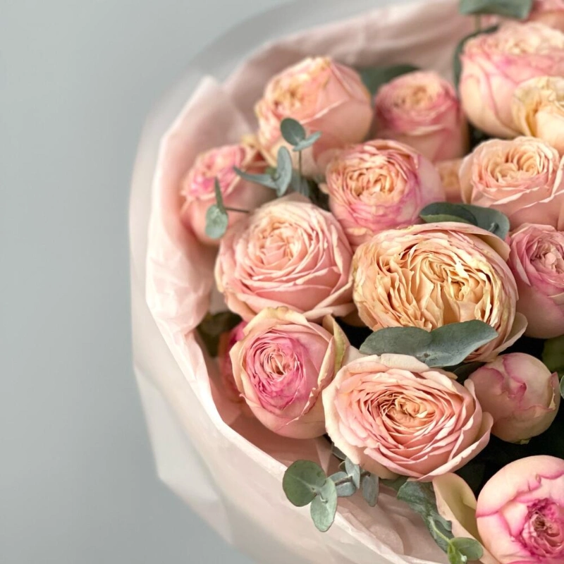Любимой 💗5 кустовых роз тендрессе с эвкалиптом