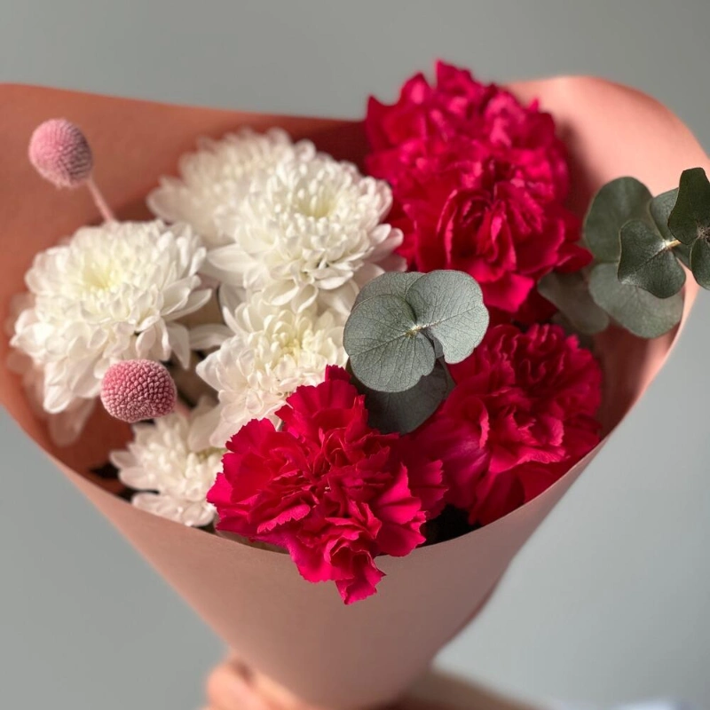 ГлавнаяКаталогБукетыБукет-комплимент кустовая хризантема и диантусы