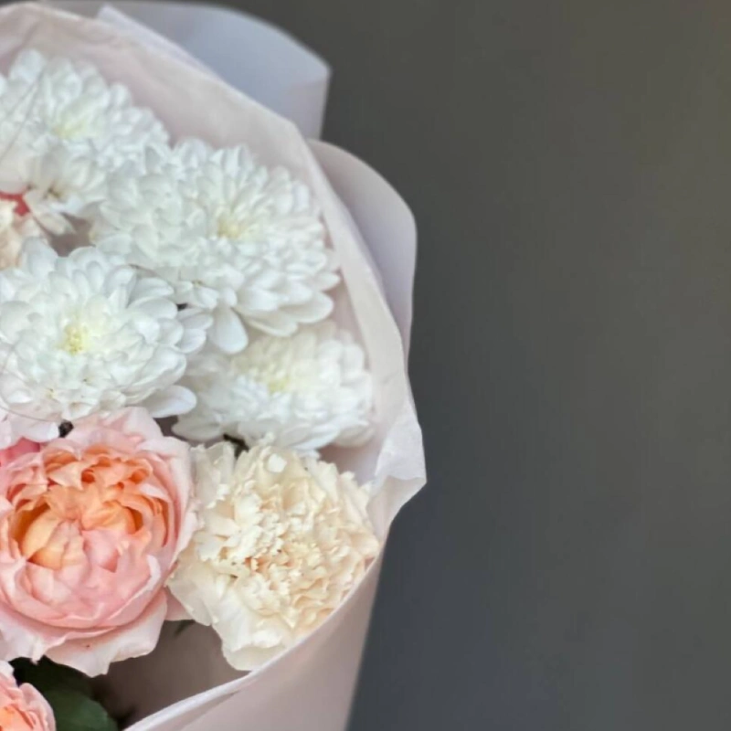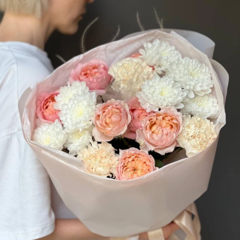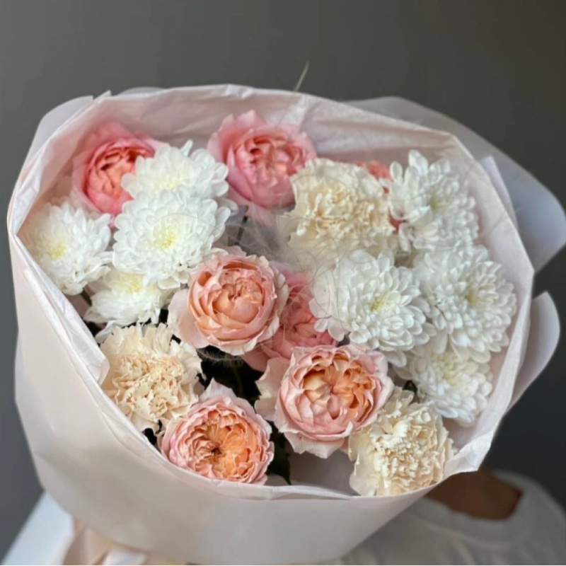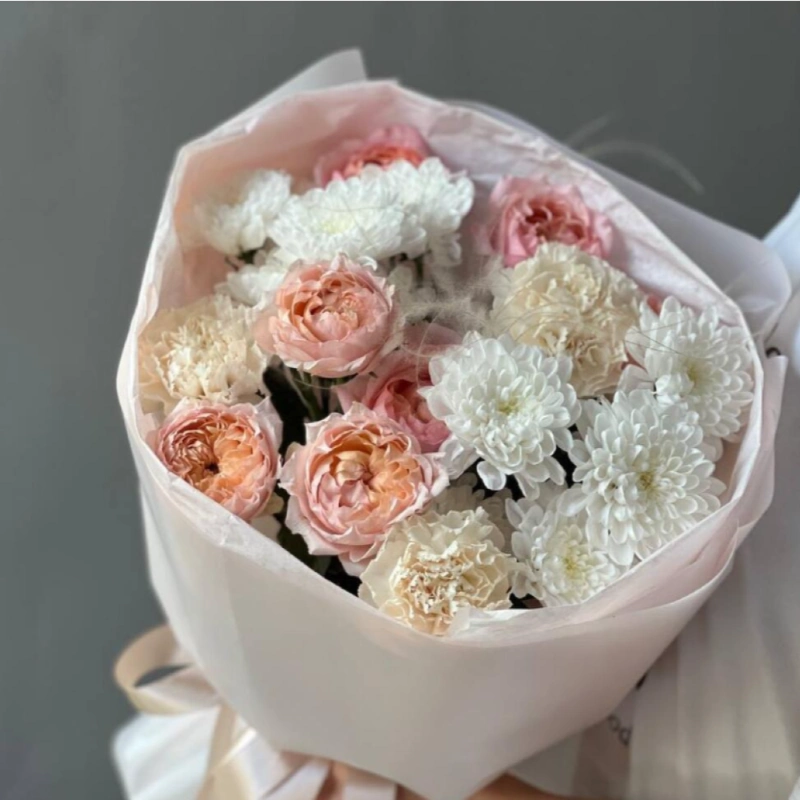 Сборный букет из Кустовой Розы и хризантемы