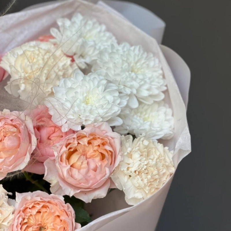 Букет «Amour» с розами и хризантемами