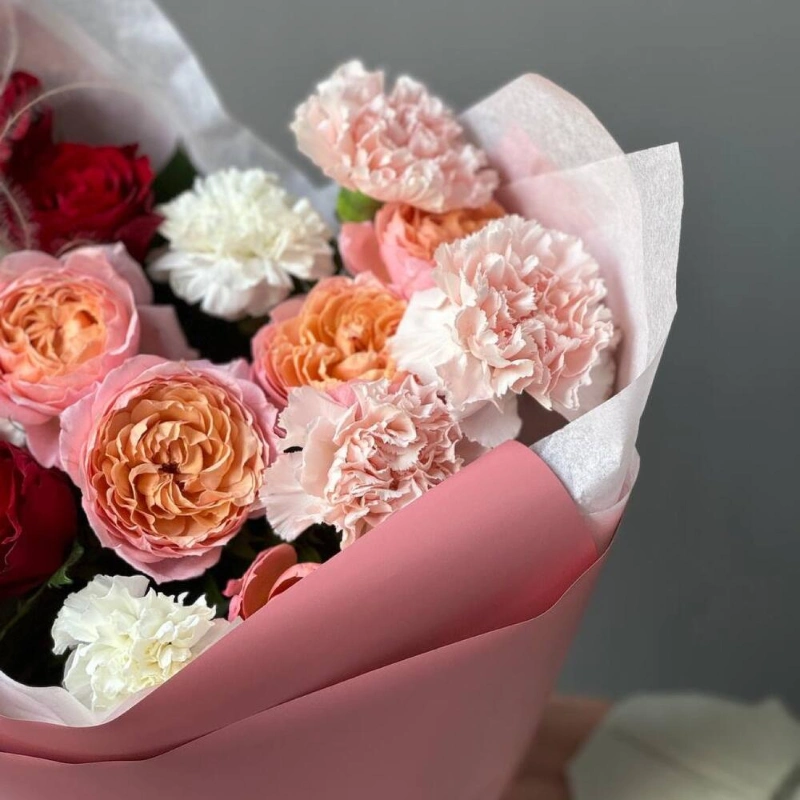 Букет цветов из кустовых пионовидных роз Тендрессе