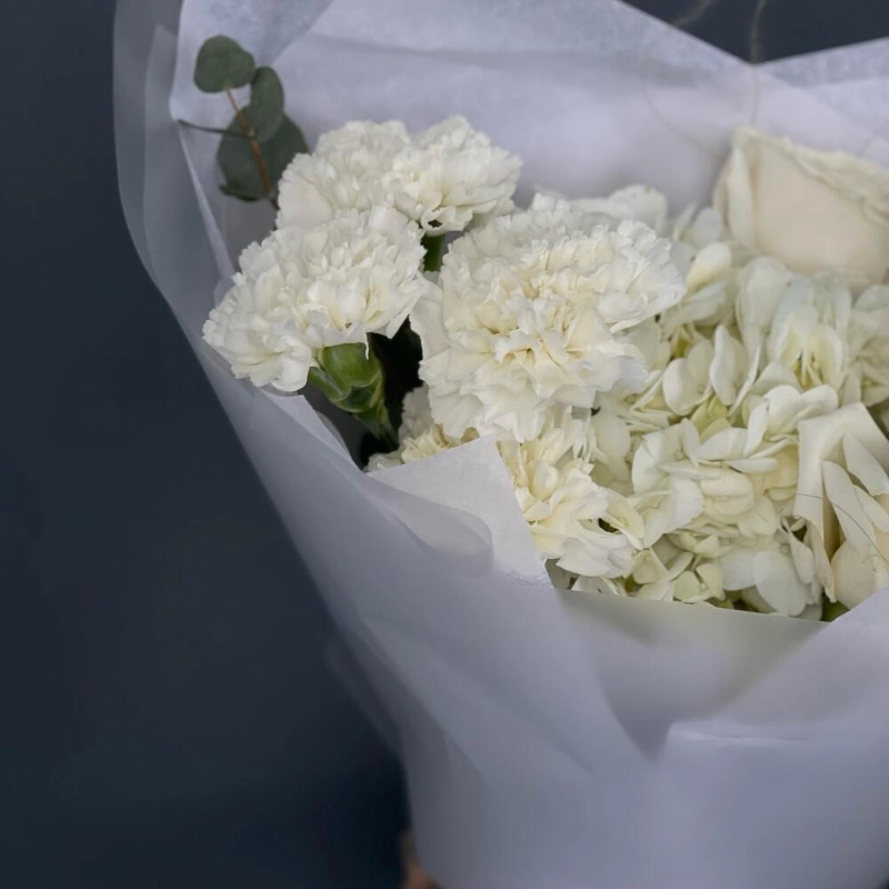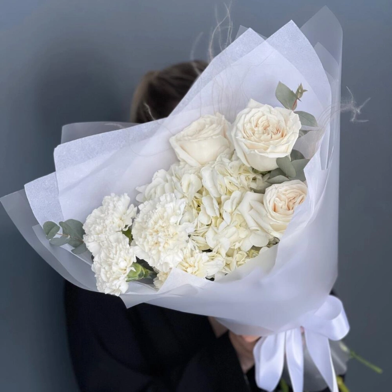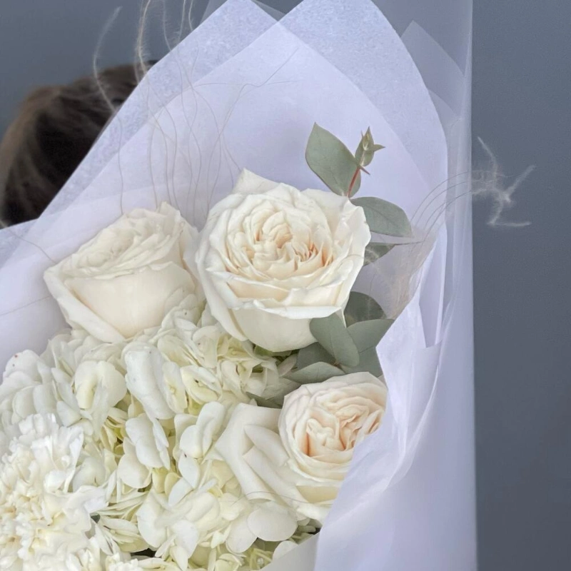 ГлавнаяКаталогБукетыАвторский букет «Белый» с ароматными розами