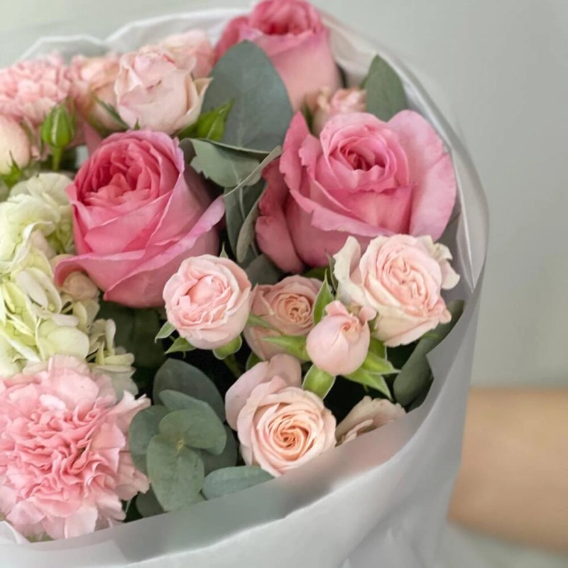 Букет цветов из кустовых пионовидных роз Тендрессе