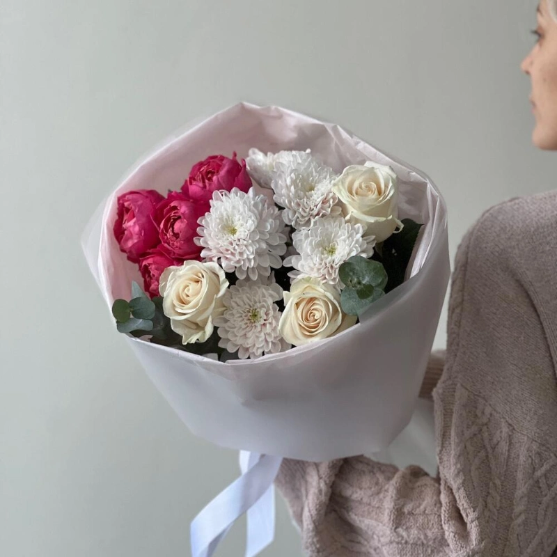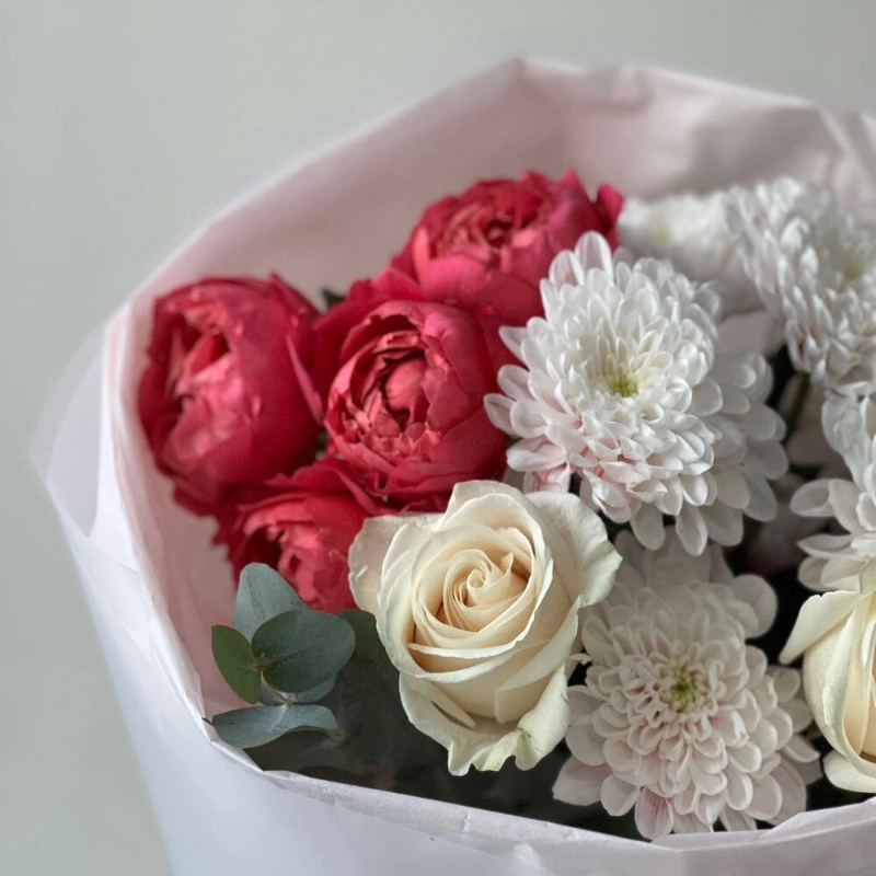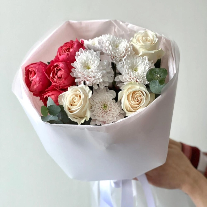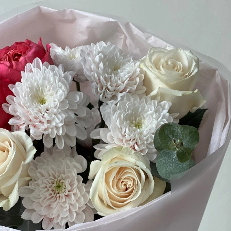 Кустовые розы «Тендрессе» 11 с эвкалиптом