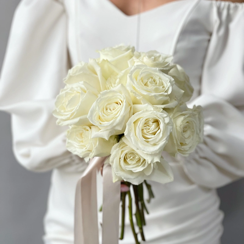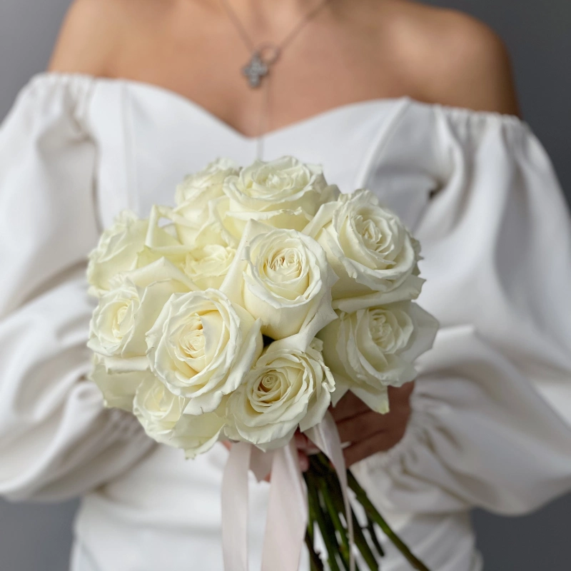 Букет невесты из белых пионовидных роз Playa Blanca — это классический и элегантный вариант для вашего свадебного образа. Этот минималистичный букет идеально подойдёт к платью любого фасона и оттенка, подчёркивая вашу красоту и нежность. Розы Playa Blanca создадут атмосферу роскоши и гармонии на вашем торжестве.