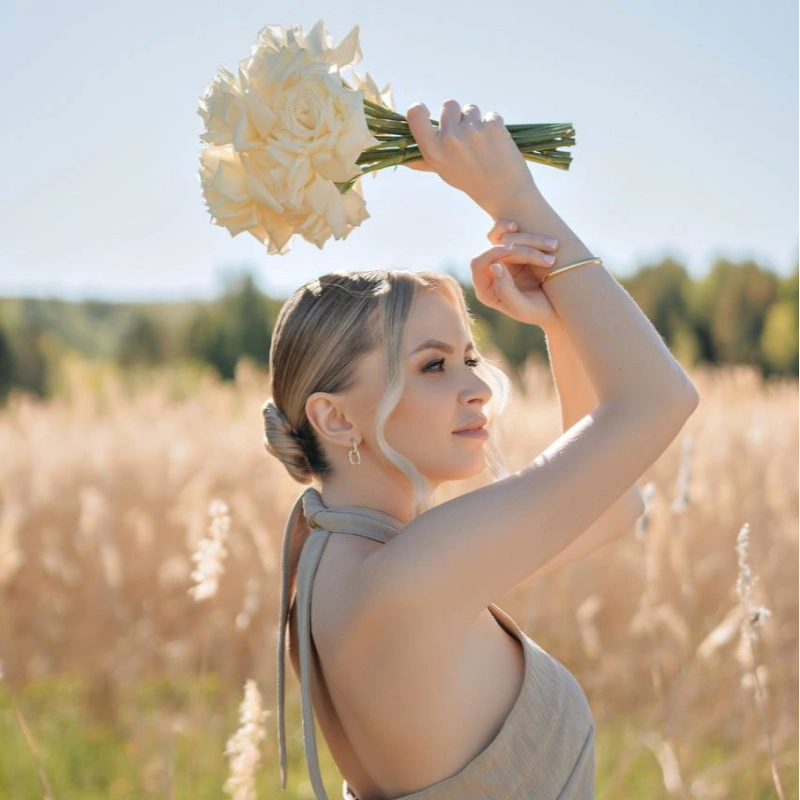 Букет невесты из белых роз «Плайя Бланка» — это воплощение нежности и стиля. Эти розы символизируют чистоту и любовь, а их пышные бутоны и тонкий аромат станут прекрасным дополнением к атмосфере вашего торжества.