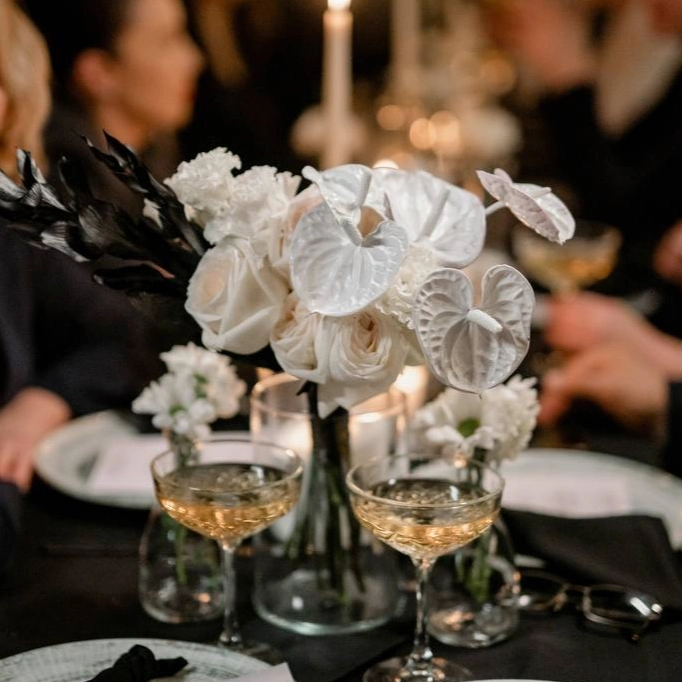 ГлавнаяКаталогБукетыБукет с антуриумами и розами «With&Black»