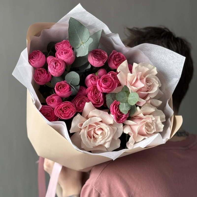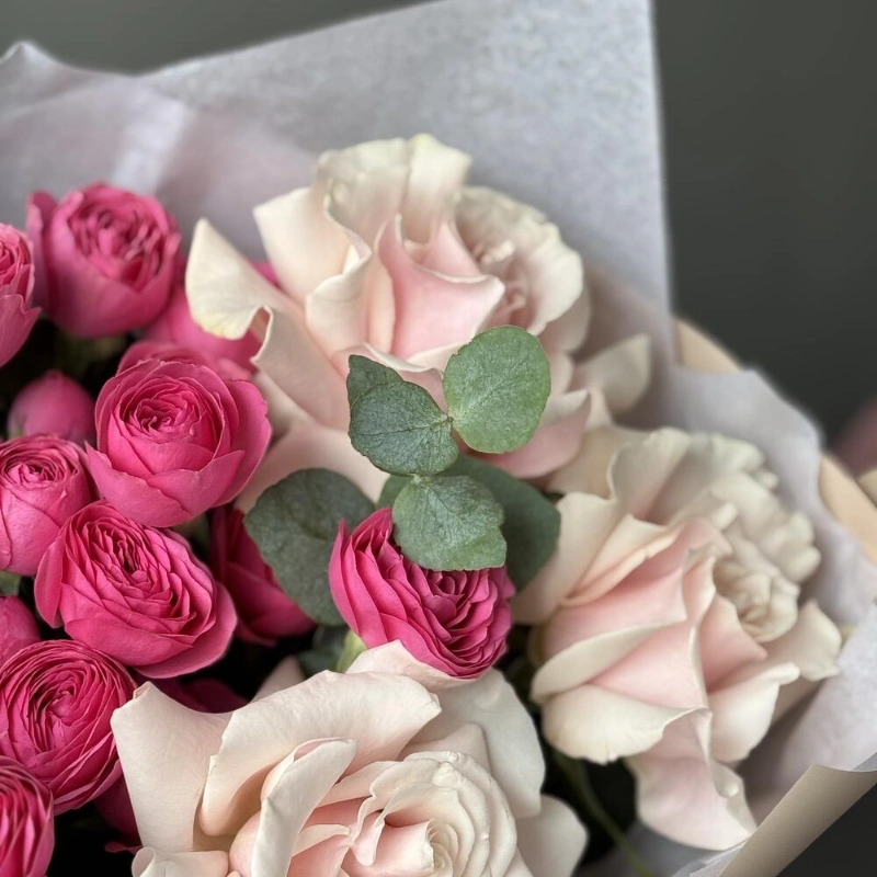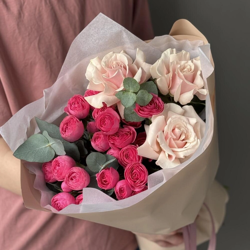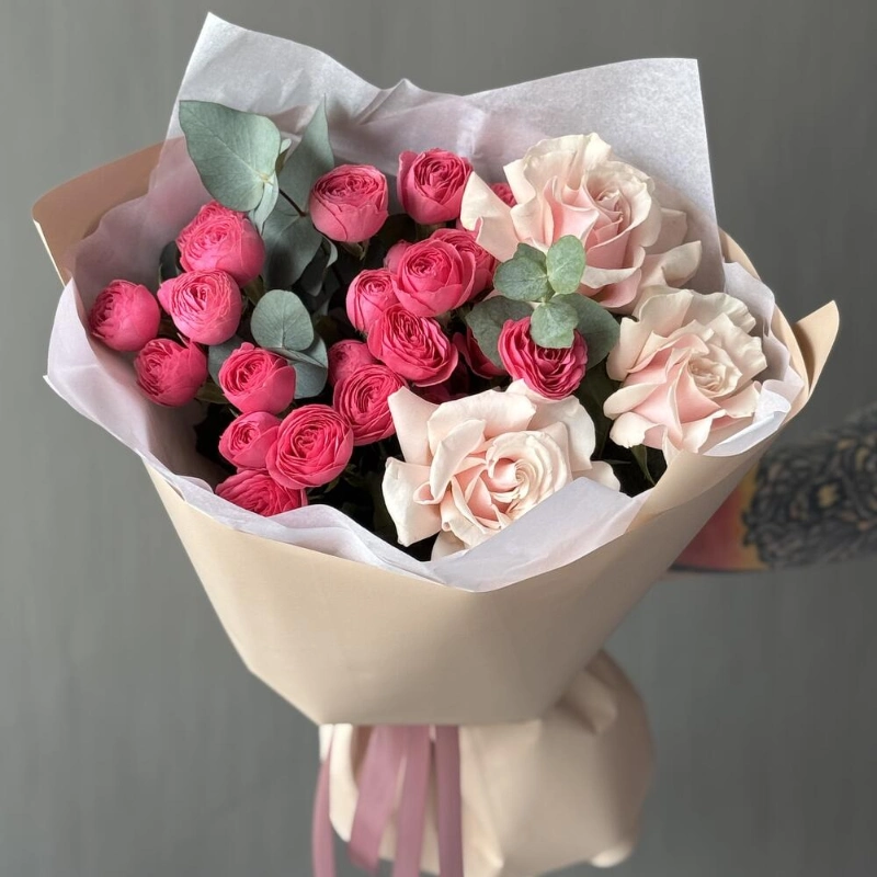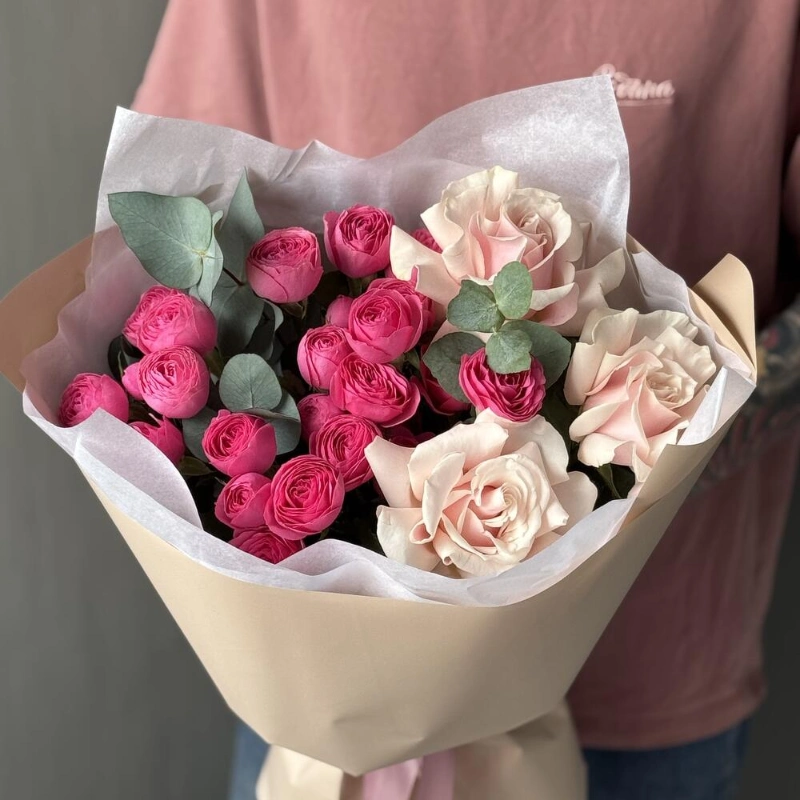 Букет из кустовой розы Giselle и розы Pink Mondial