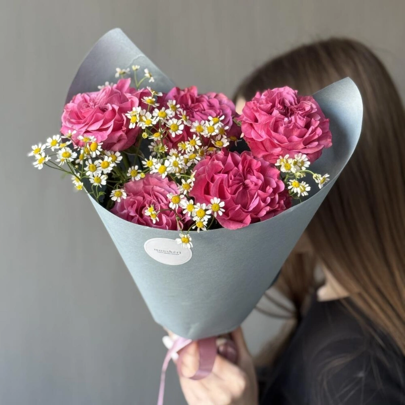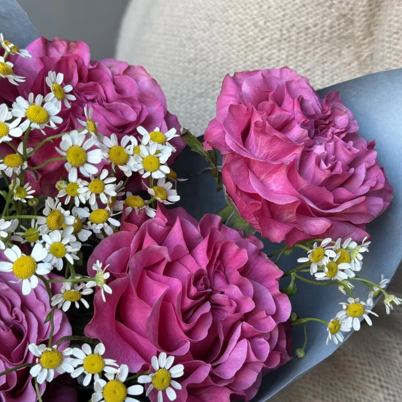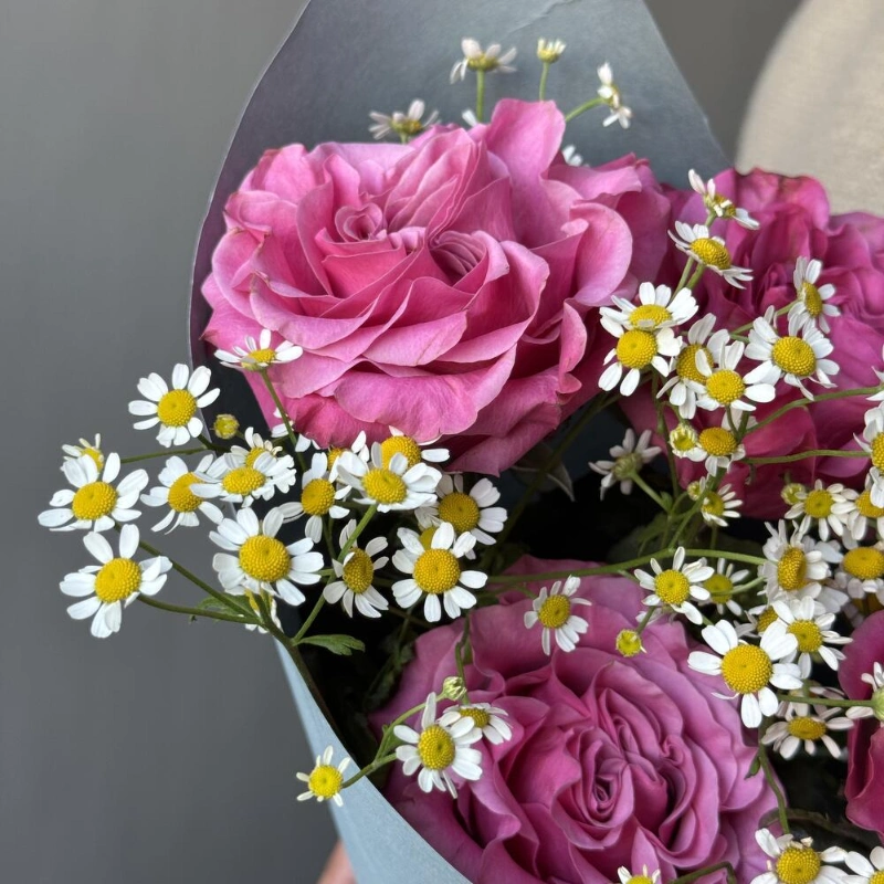 ГлавнаяКаталогБукетыДуо-букет из роз и ромашки