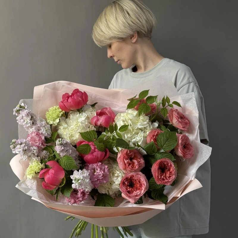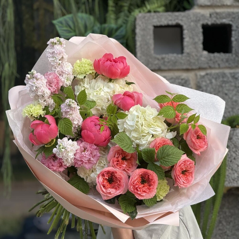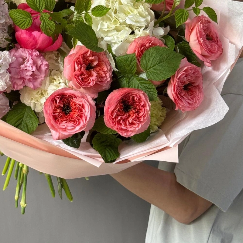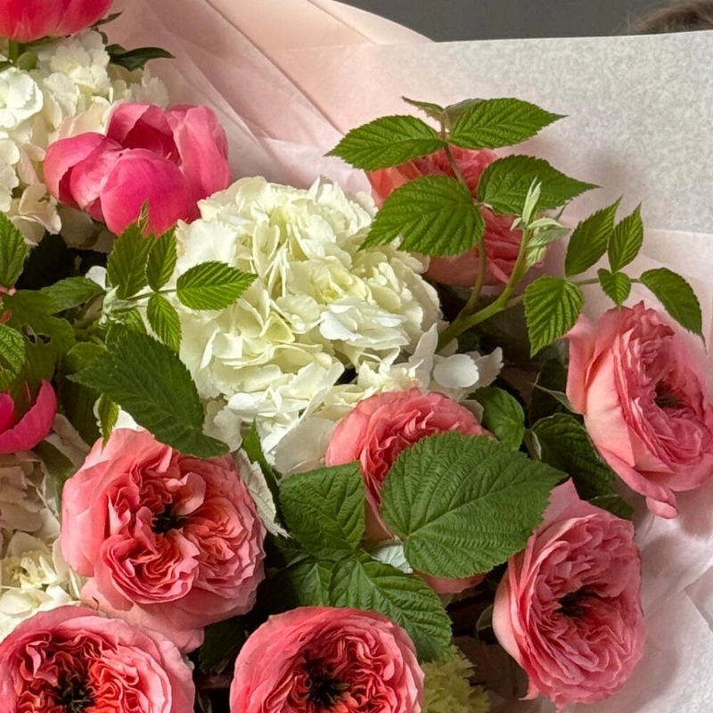Букет из кустовой розы Giselle и розы Pink Mondial