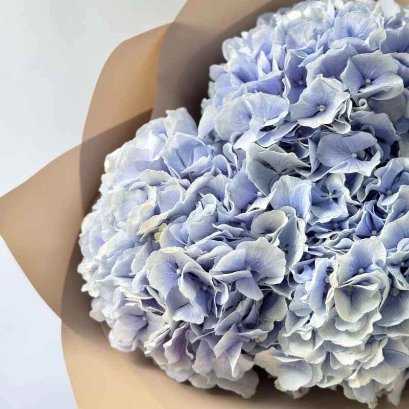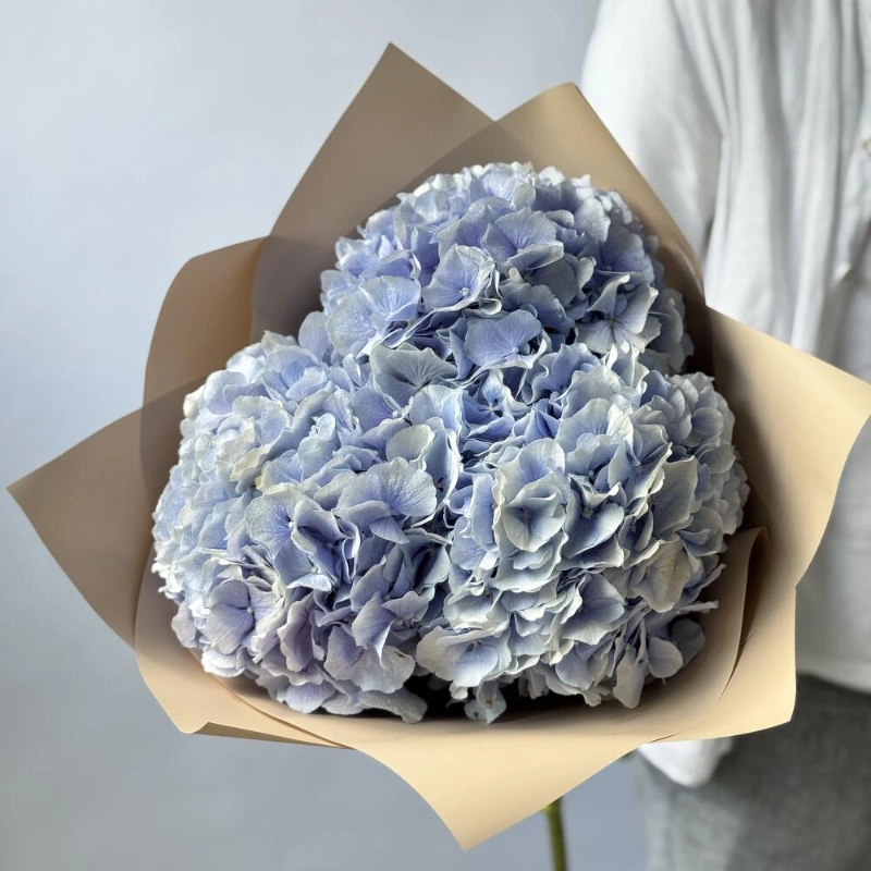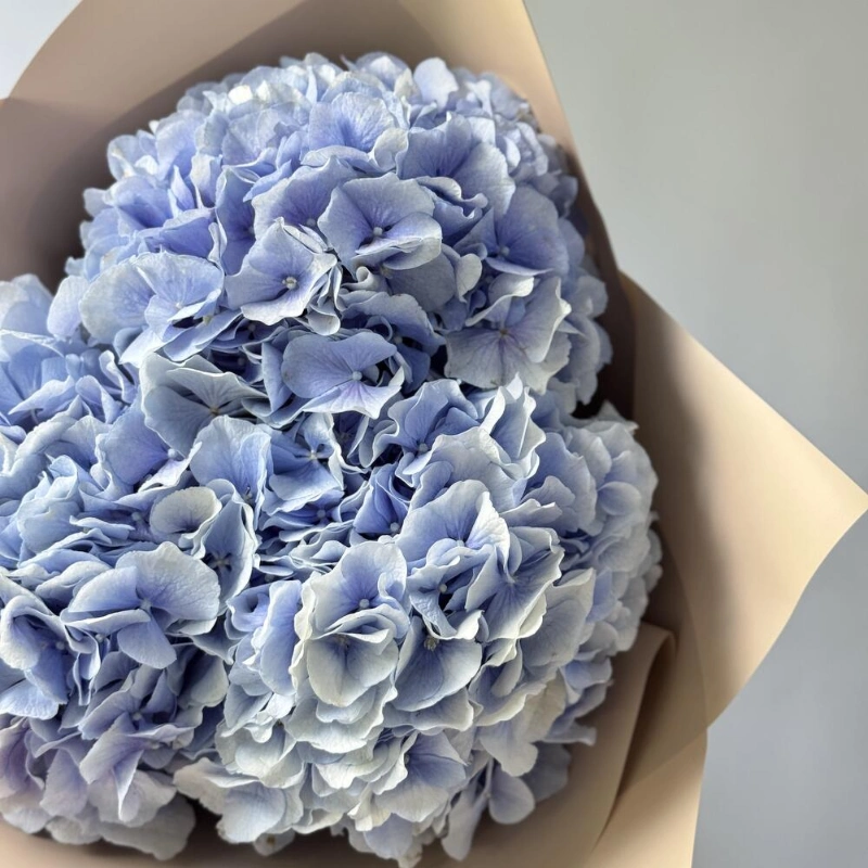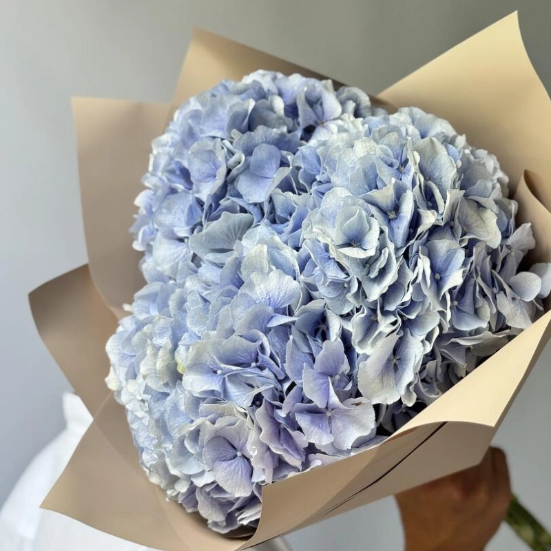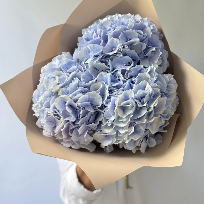 Подарите себе или близким настоящее великолепие! Три пышных голубых гортензии, собранные в этот шикарный букет, станут незабываемым подарком для любого торжества. Мы позаботились о каждой детали: букет изящно упакован в дизайнерскую бумагу, которая подчеркнет его красоту и сделает его ярким акцентом в любом доме. А чтобы ваши пожелания были услышаны, мы добавили открытку, и, конечно же, подкормку, чтобы эти чудесные цветы радовали вас своей свежестью как можно дольше.
