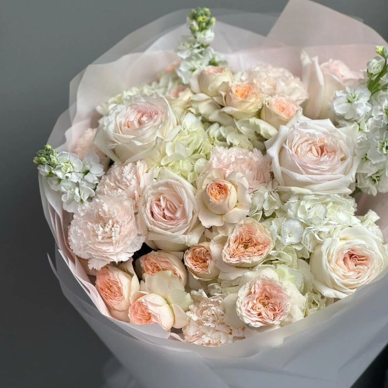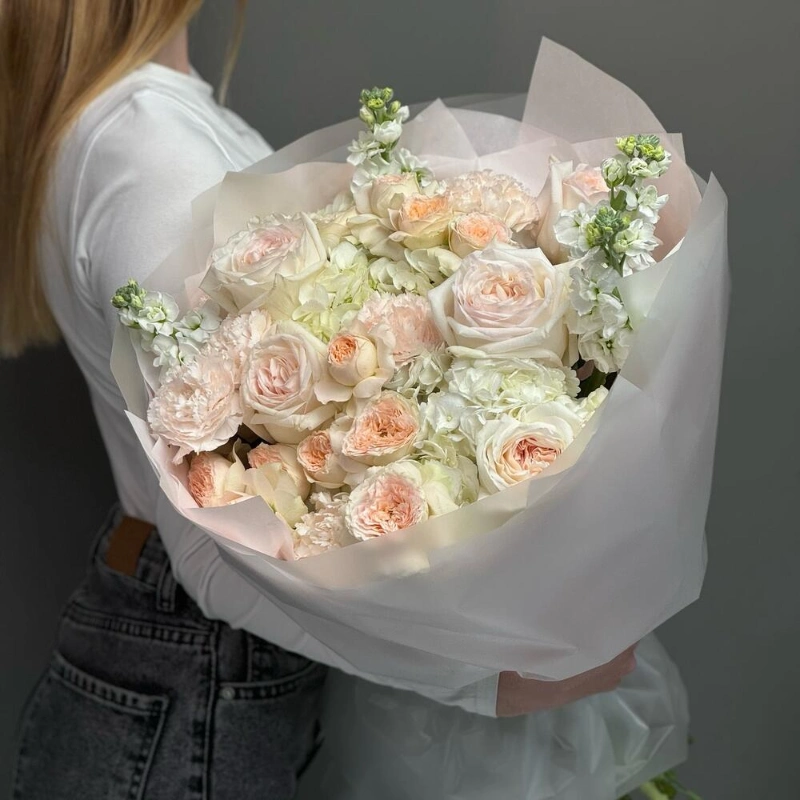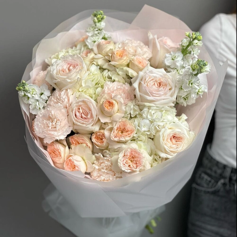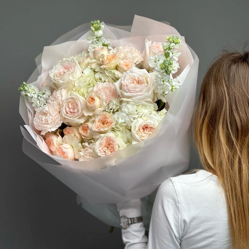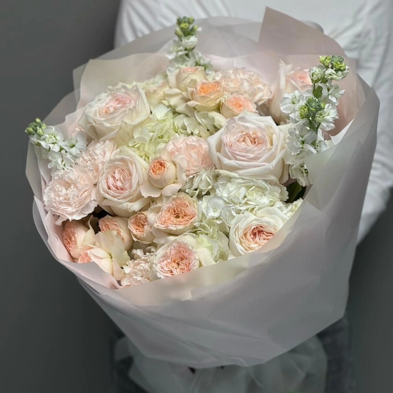 Огромный нежный букет с Ароматными Розами и Маттиолой