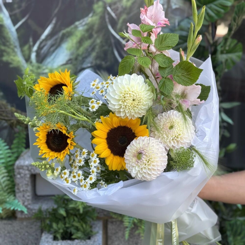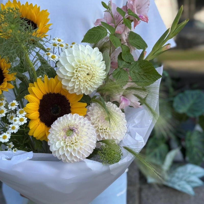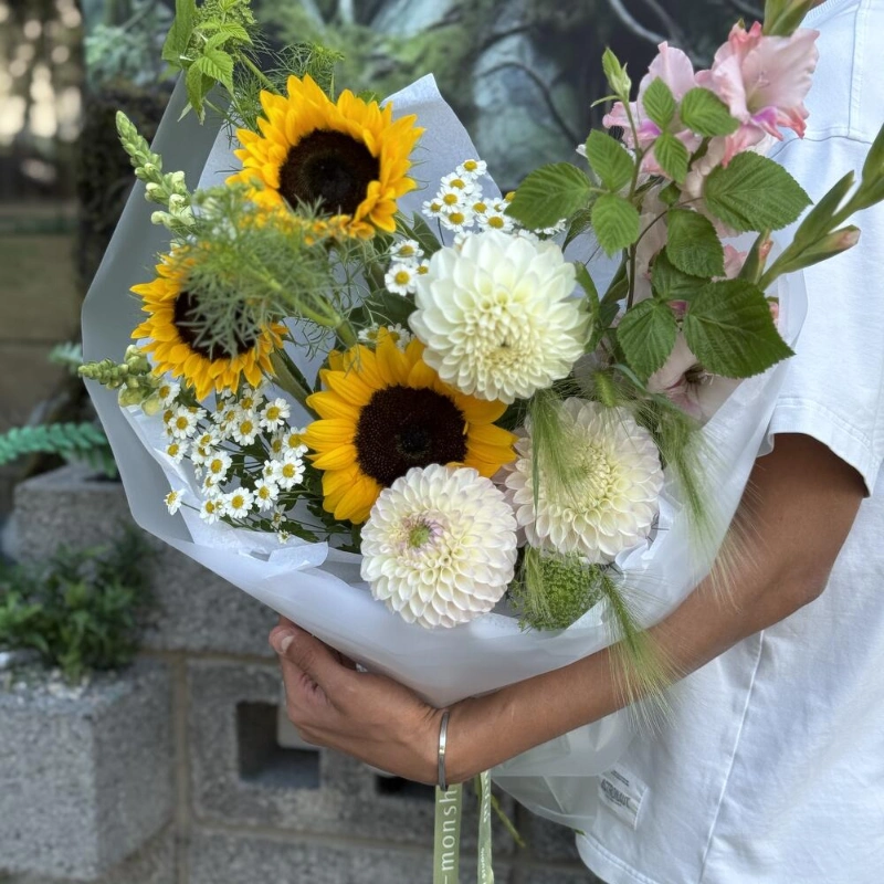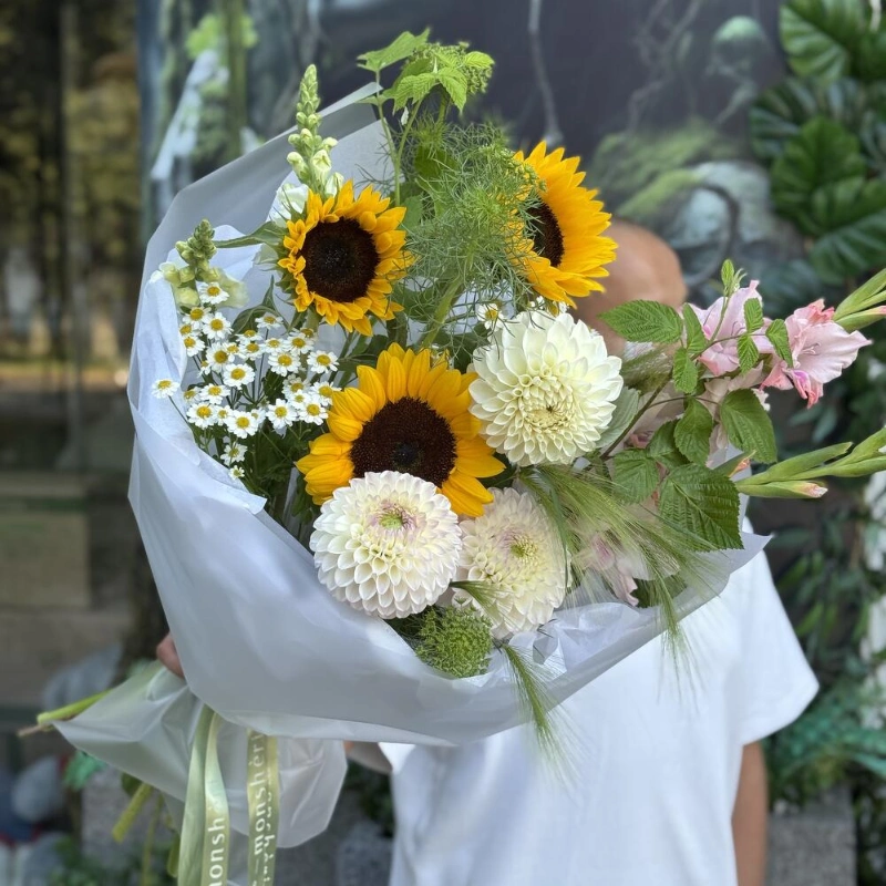 ГлавнаяКаталогБукетыАвторский букет от шеф флориста с подсолнухами
