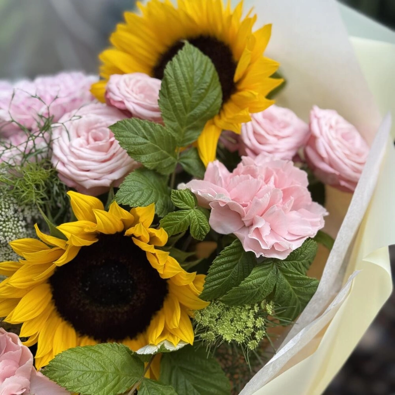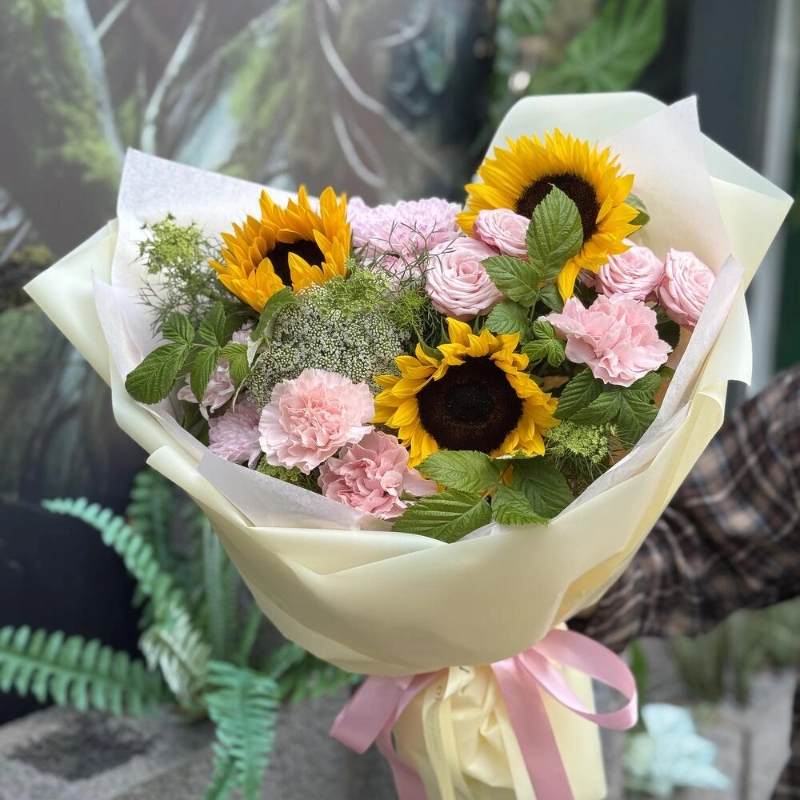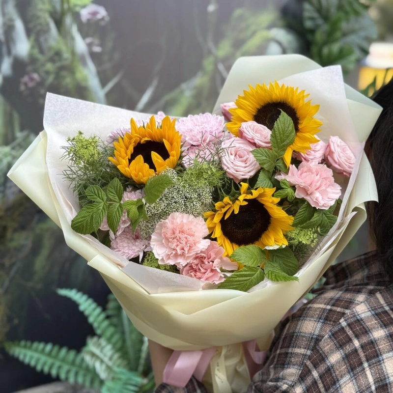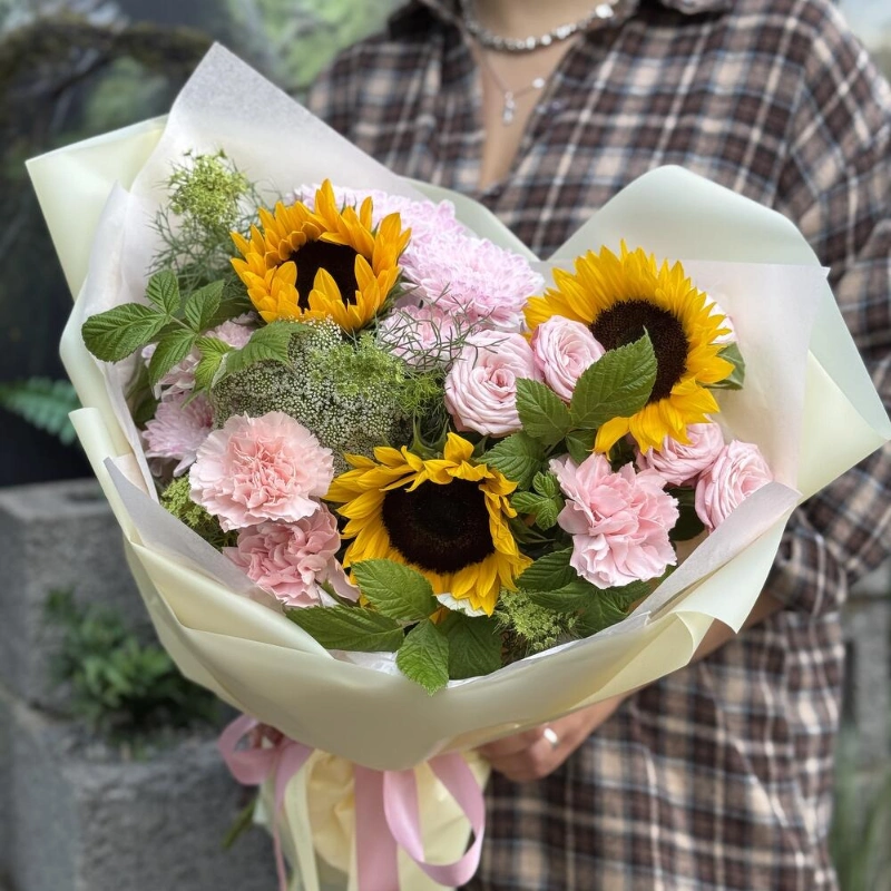 ГлавнаяКаталогБукетыБукет с подсолнухами N2