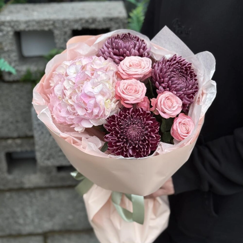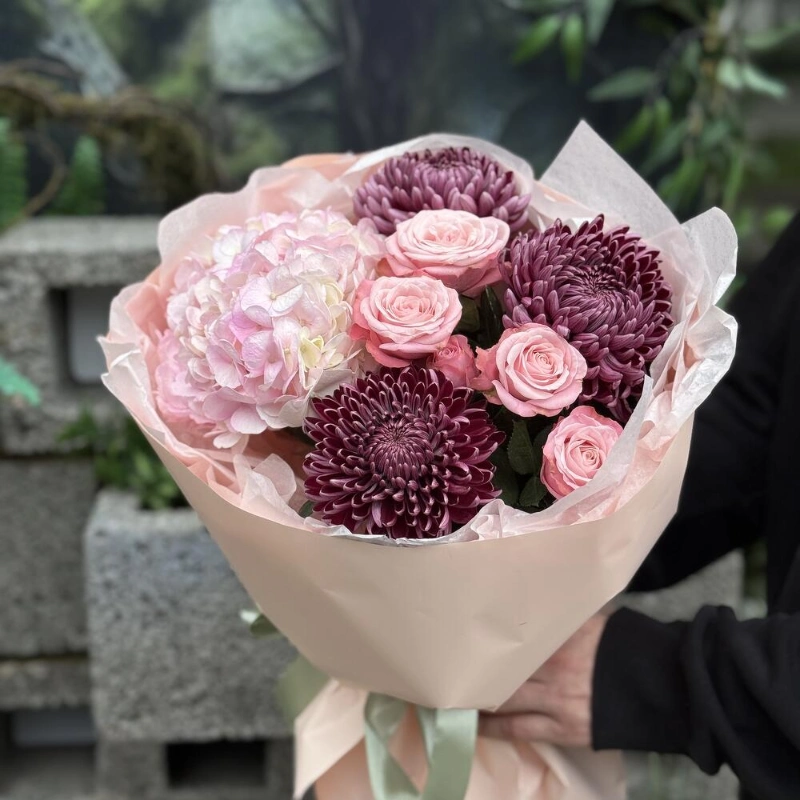 ГлавнаяКаталогБукетыХризантема Бигуди с кустовыми розами