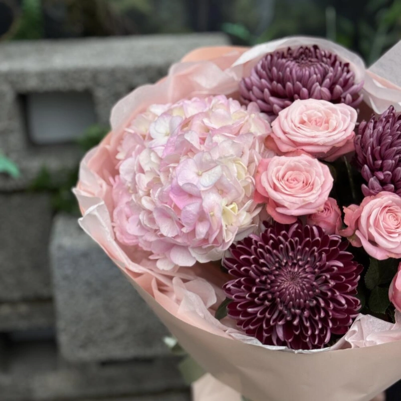 Сборный букет с Кустовой Розой и Хризантемой