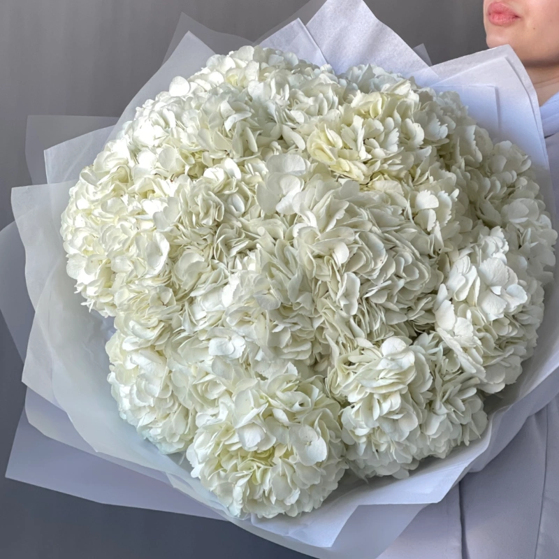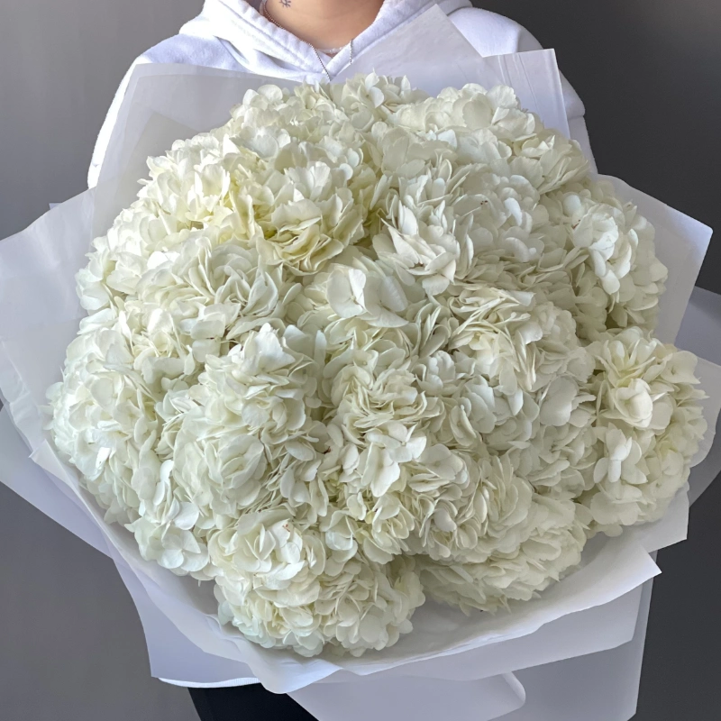 Гортензия белая 15шт которая напоминает воздушное облачко, очень эффектный букет который будет радовать получателя