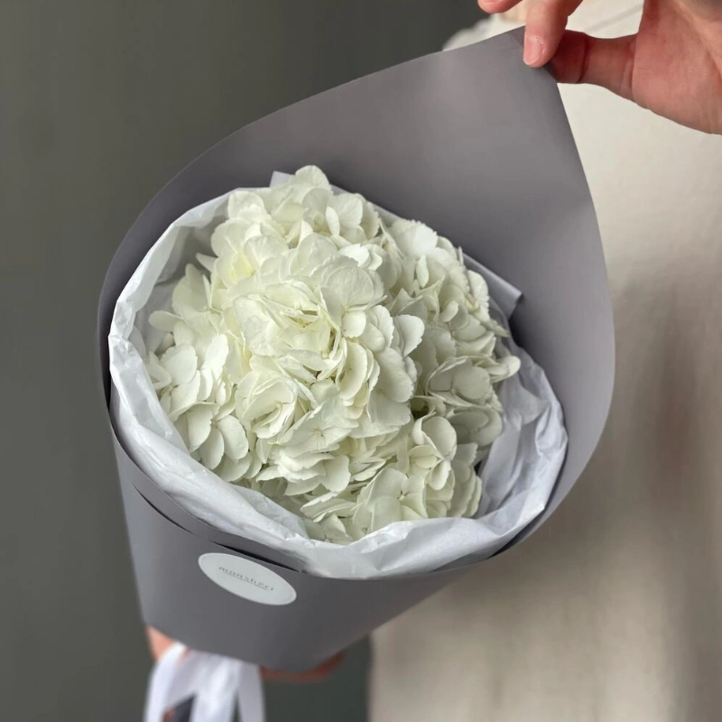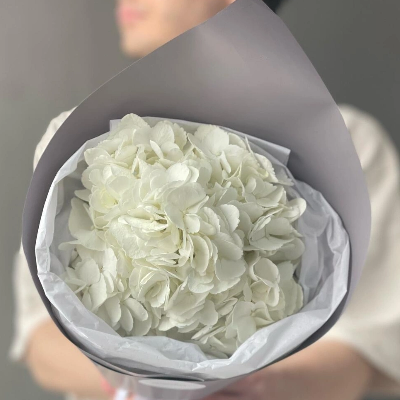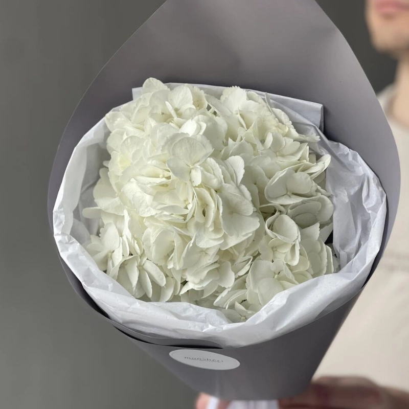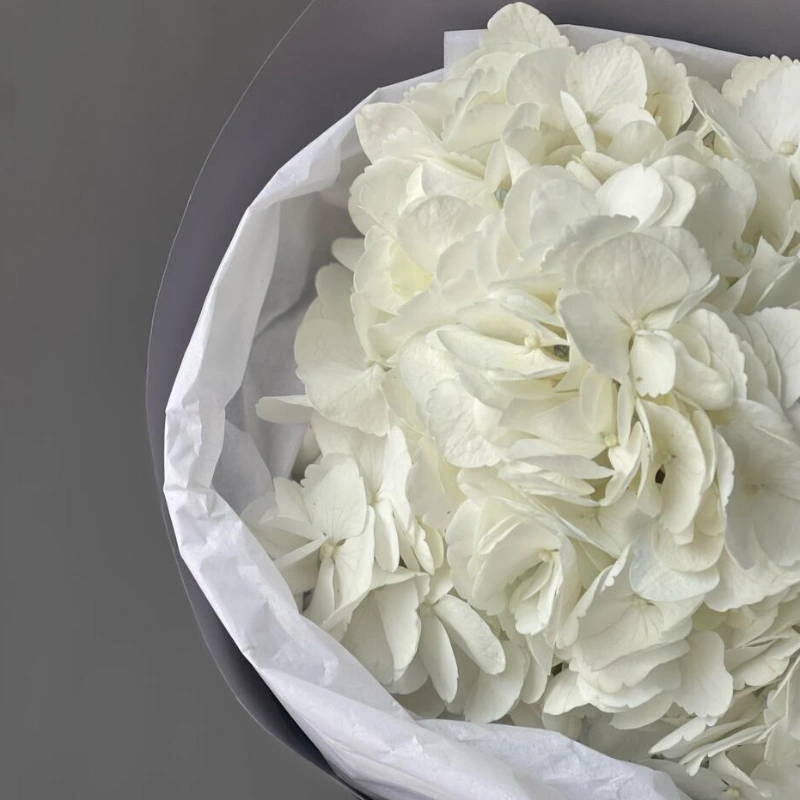 ГлавнаяКаталогБукетыМонобукетыБелая Гортензия «Сливочное мороженое»