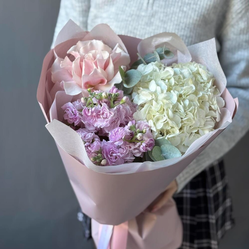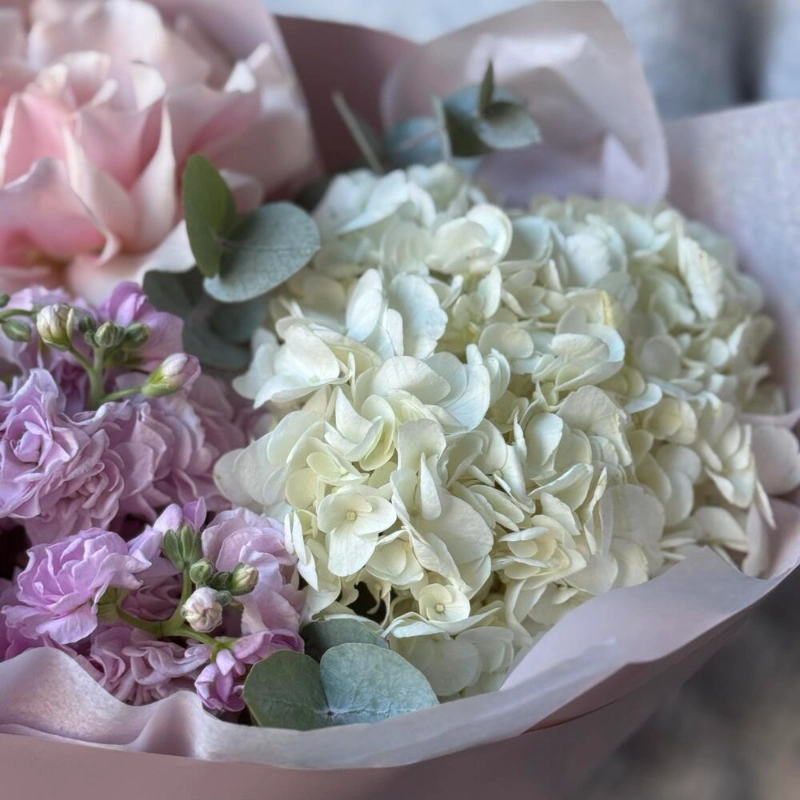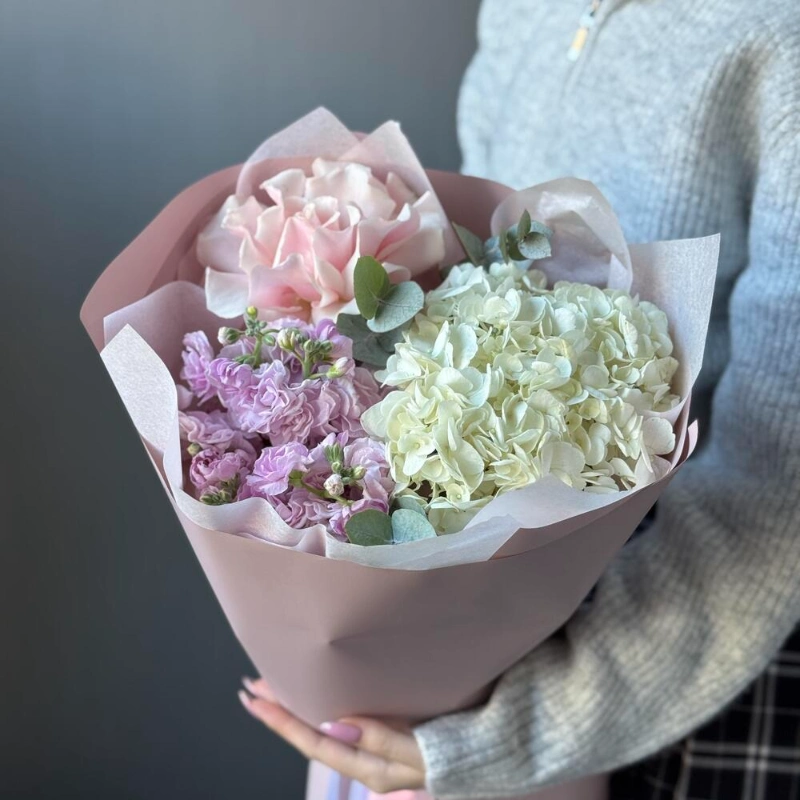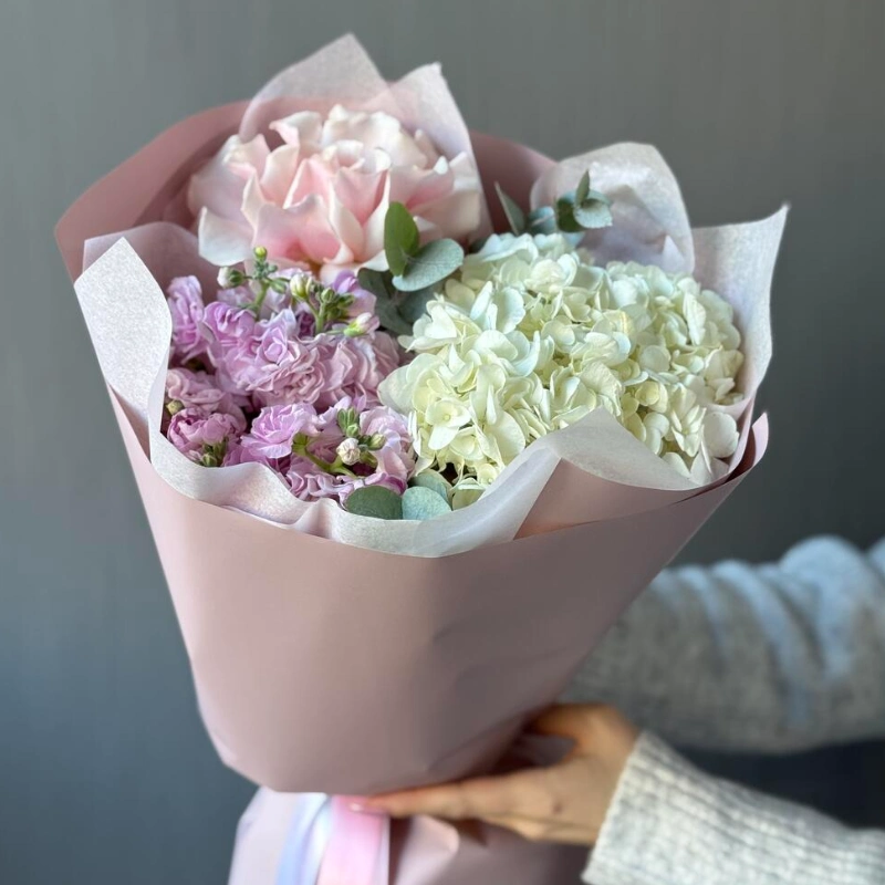 Букет «Версаль» | гортензия - роза - маттиола - эустома