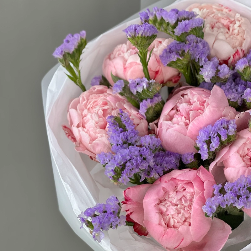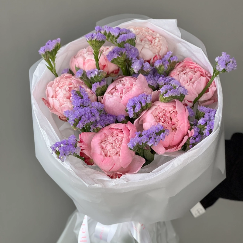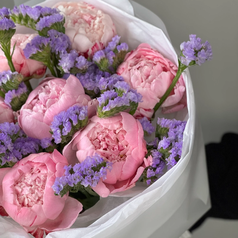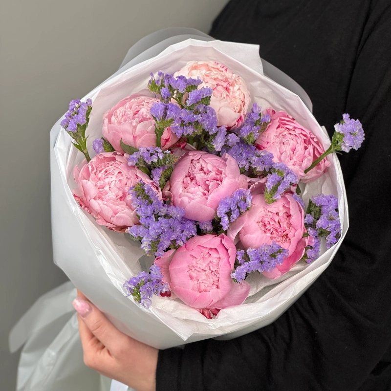 Сборный букет с пионами и статицей