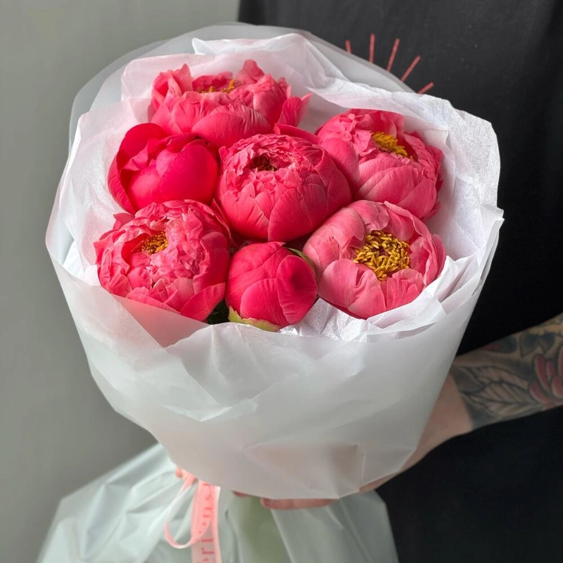 ГлавнаяКаталогБукетыБукет «Пиономания» / пионы 7 Coral Charm
