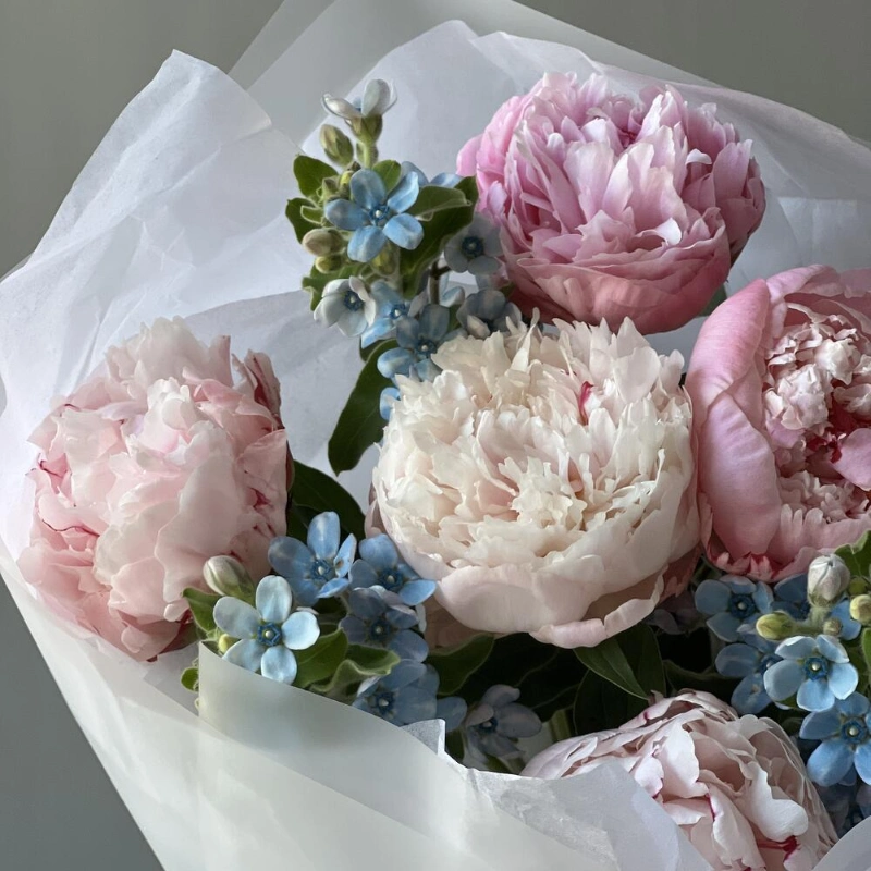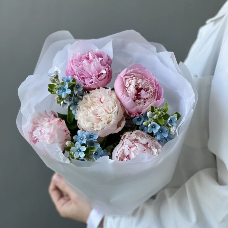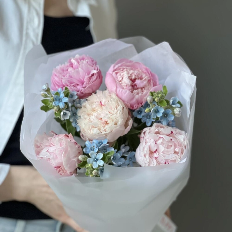 Букет «Blueberry» / 5 пион Sarah Bernard-оксипеталум