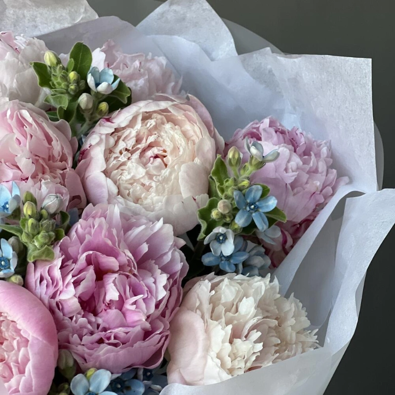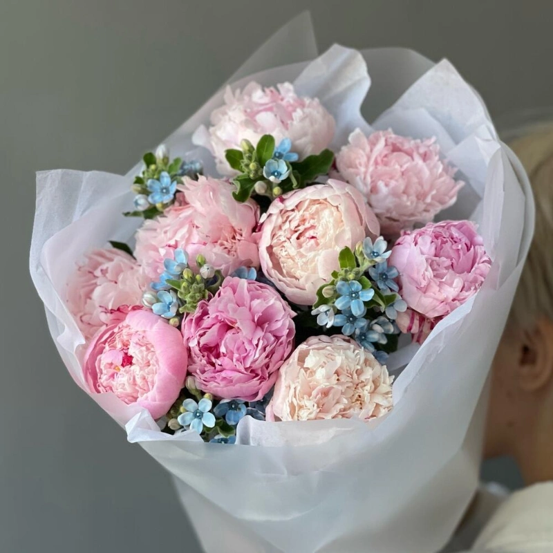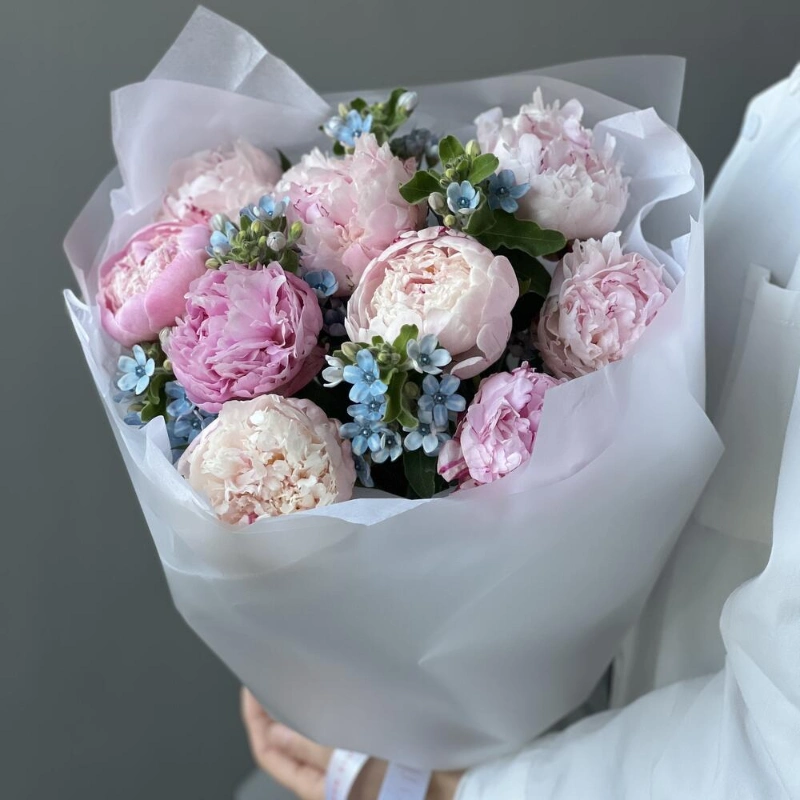 Букет «Surfingbird» / 9 пион Sarah Bernard-оксипеталум