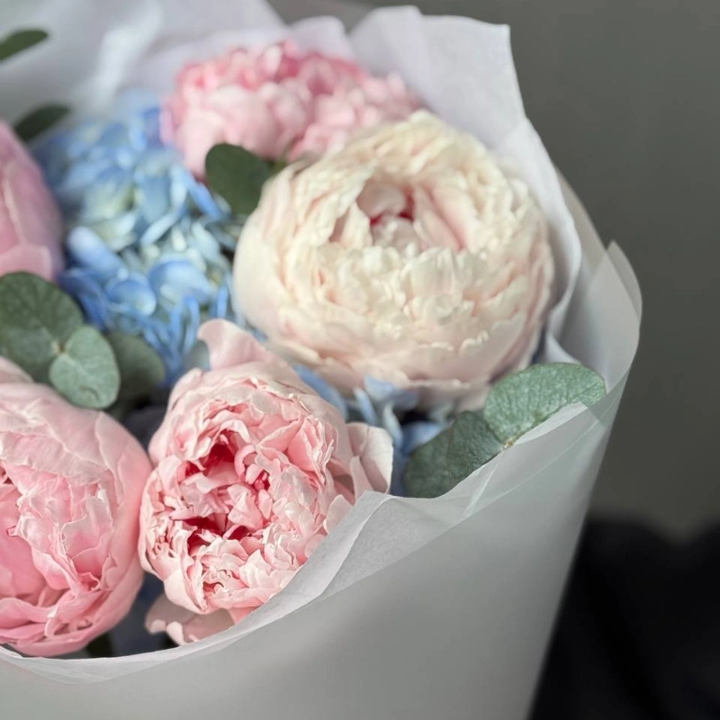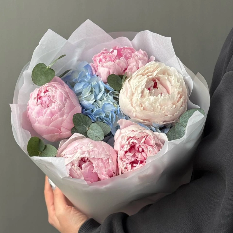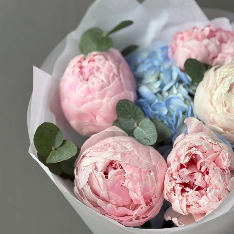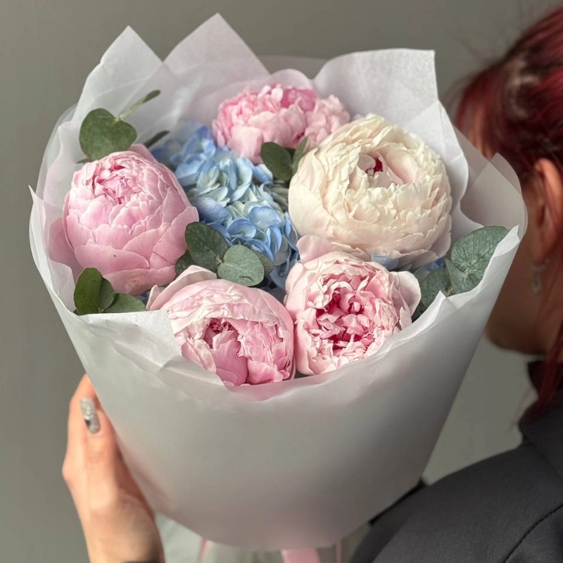 ГлавнаяКаталогБукетыБукет с пионами и гортензией