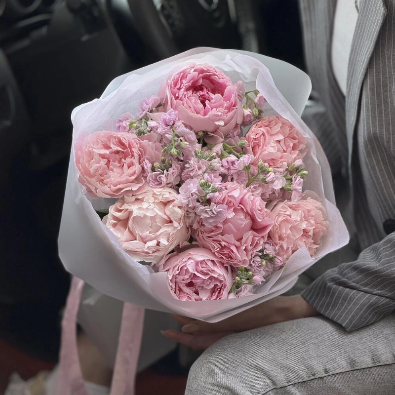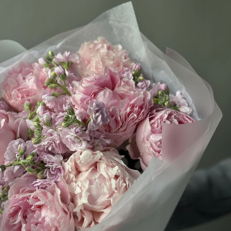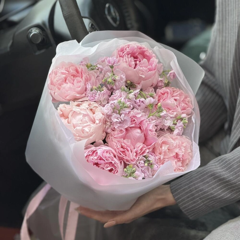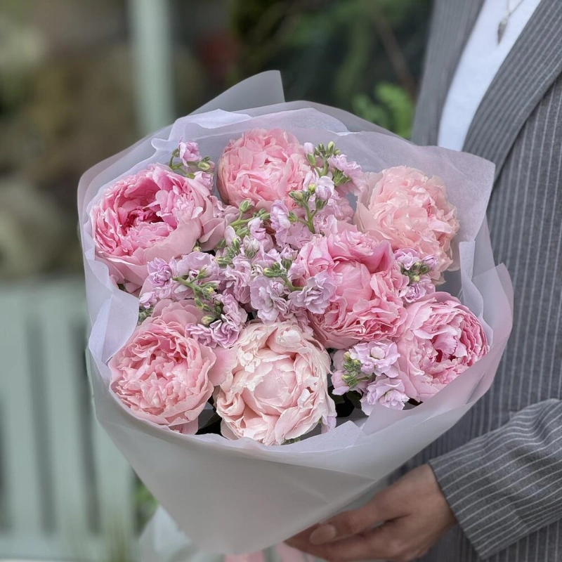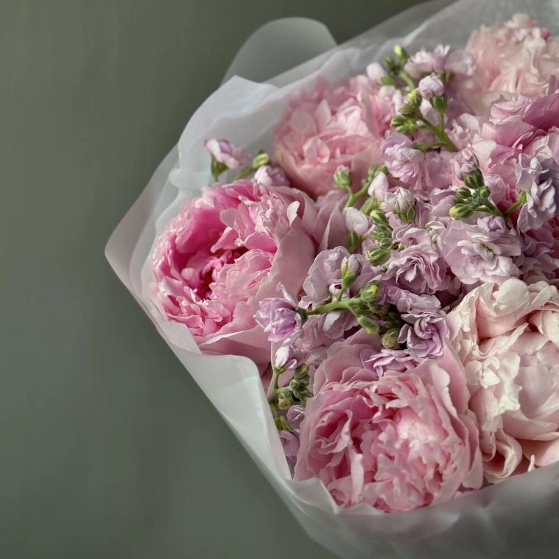 Букет «Пионолла 3.0» | пион Сара Бернар - маттиола (ароматный сезонный букет)