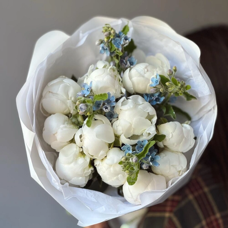 Букет «Пиокси 3.0» | пион белый 11 - незабудка