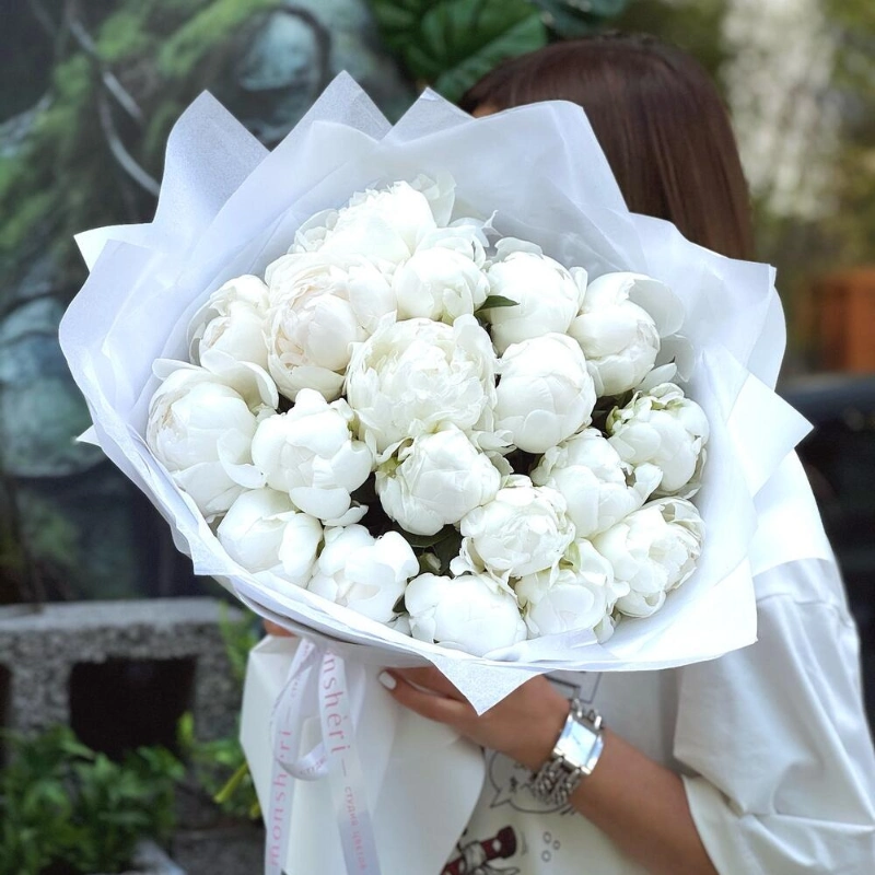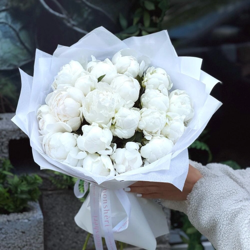 ГлавнаяКаталогБукетыБукет «Пиономания 2.0» | белый пион 25