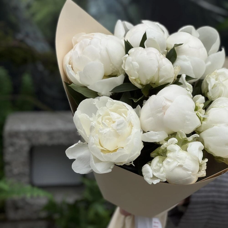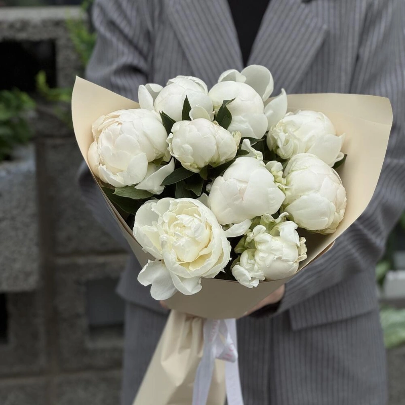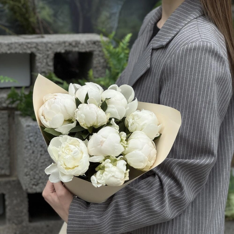 ГлавнаяКаталогБукетыБелоснежные пионы 9