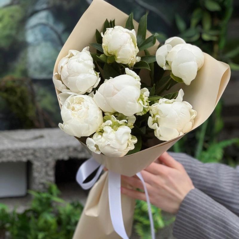 ГлавнаяКаталогБукетыБелоснежные пионы 7
