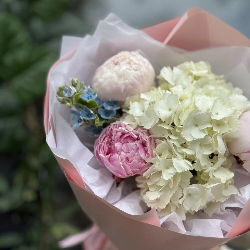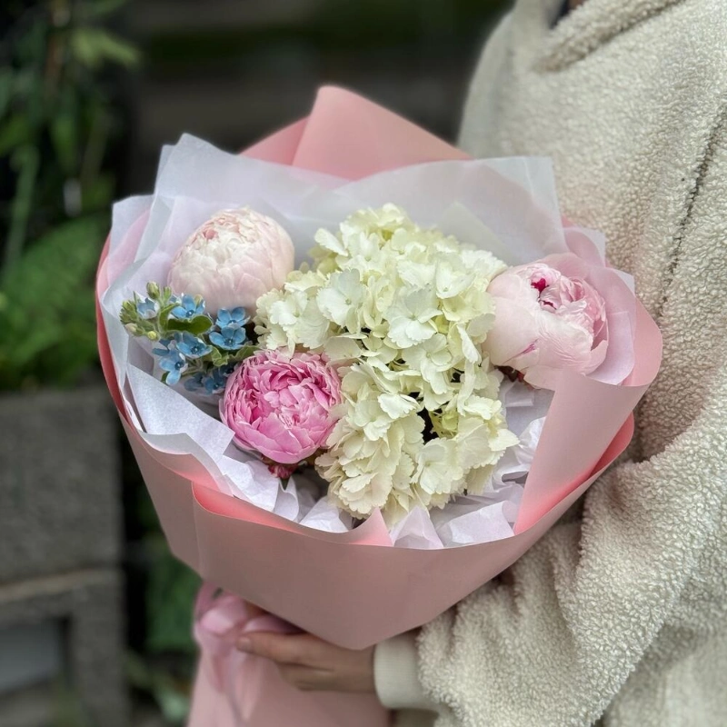 Сборный букет с пионами и статицей