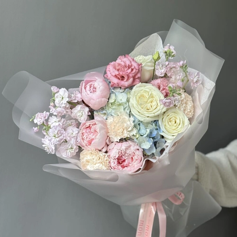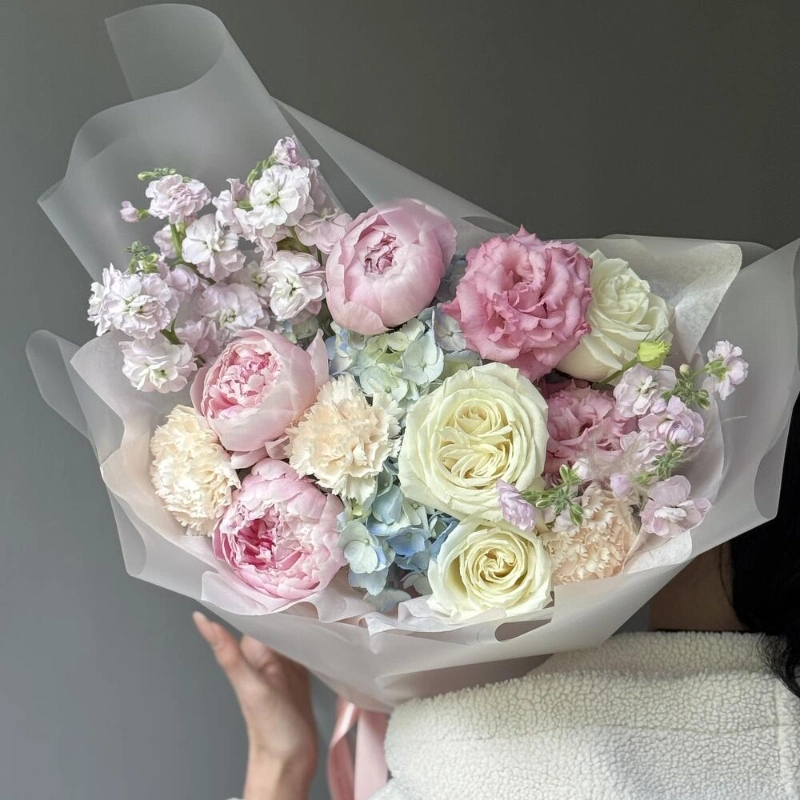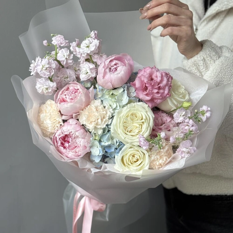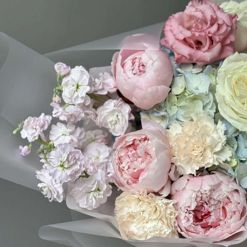 ГлавнаяКаталогБукетыНежный шикарный букет с пионами