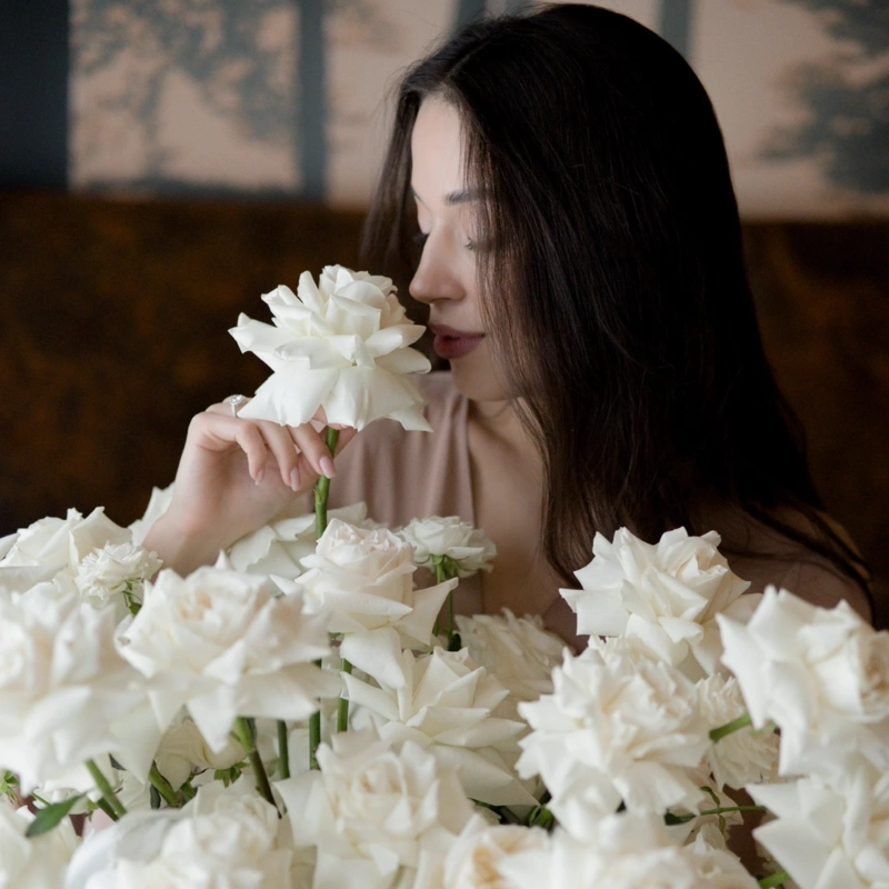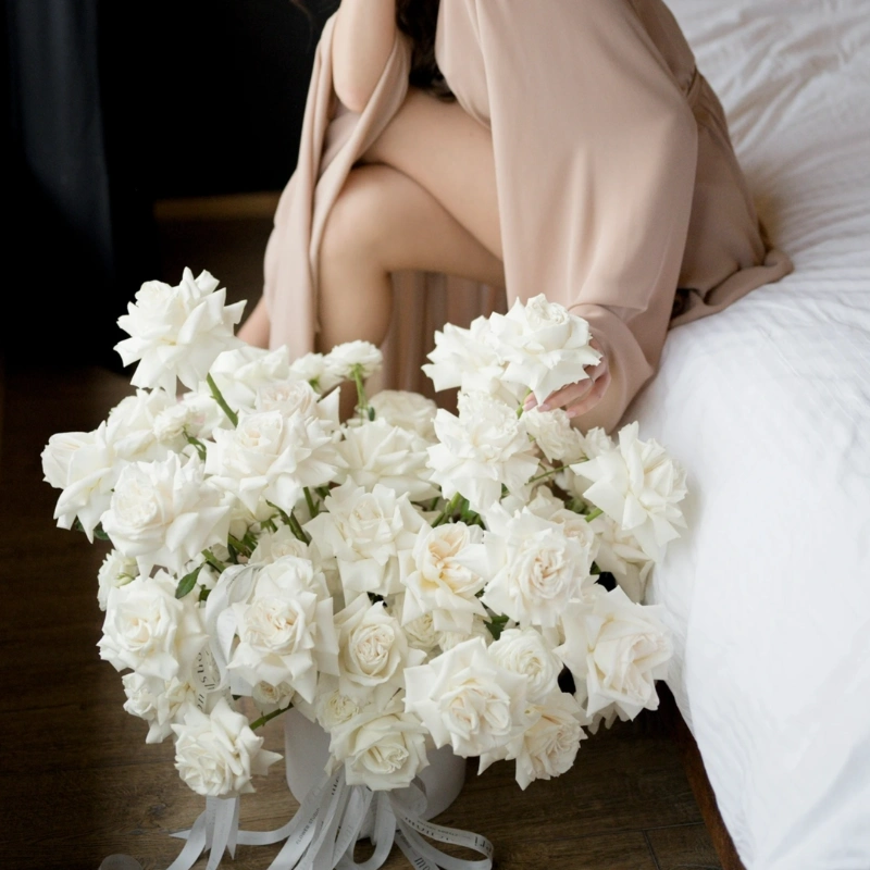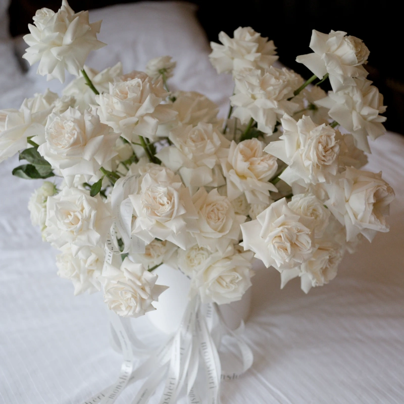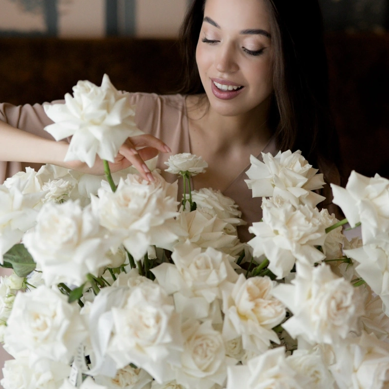 Роскошная композиция из белых французских роз 51