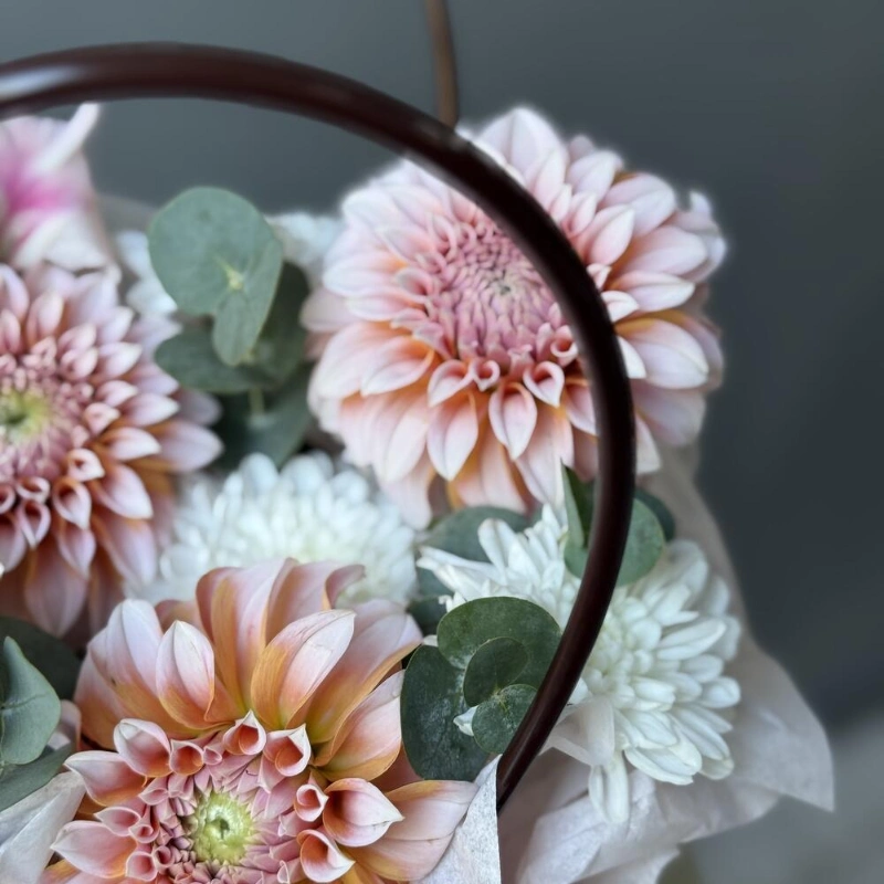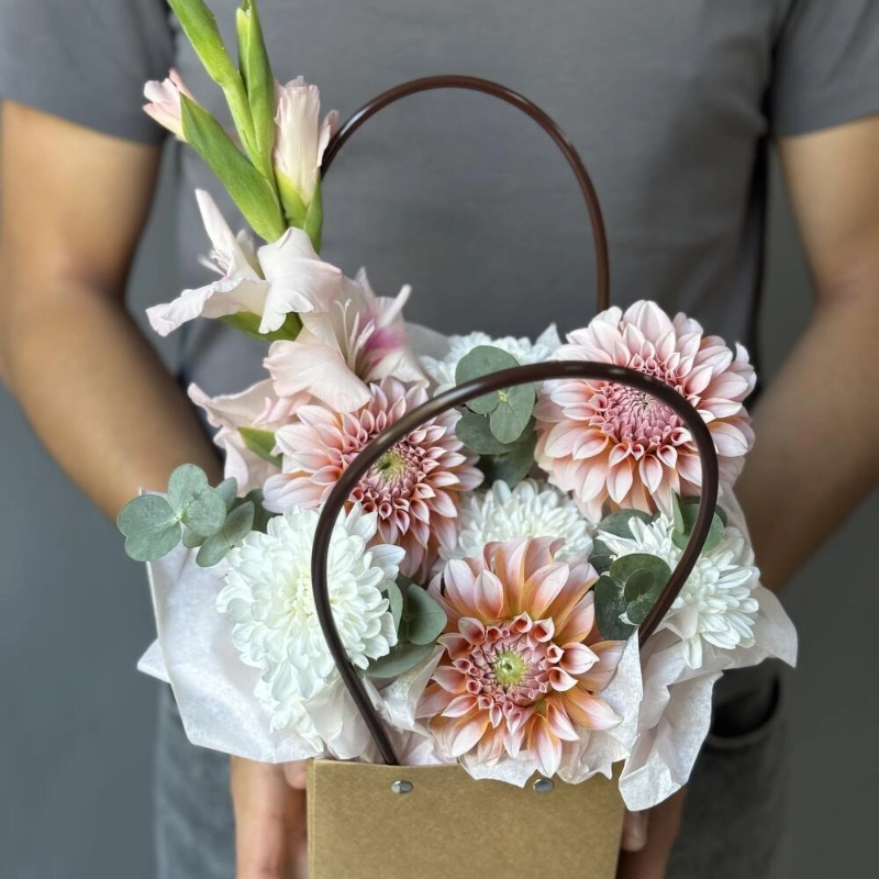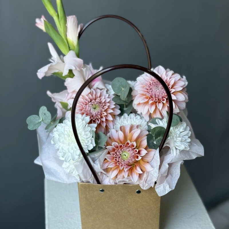 Цветы в сумочке с георгинами
