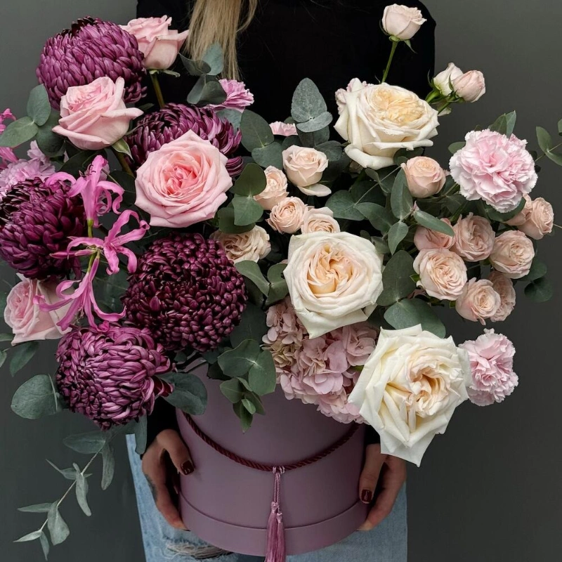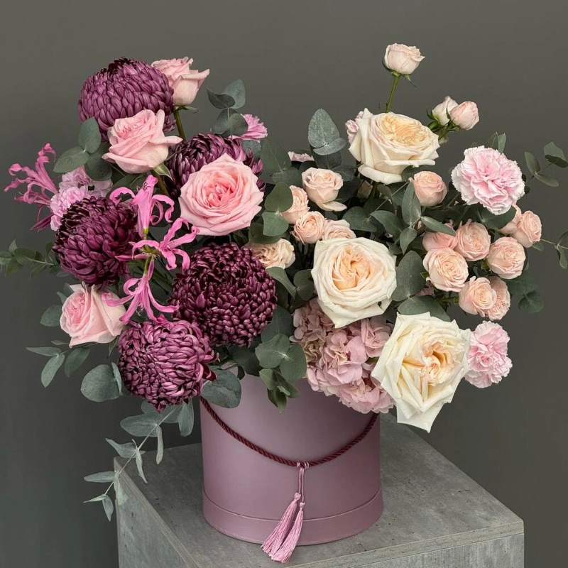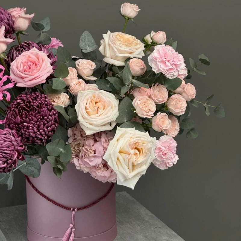ГлавнаяКаталогКомпозицииКомпозиция в коробке с розами и бигуди