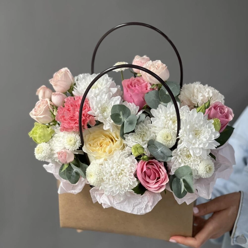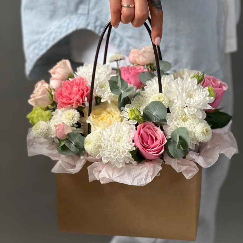 ГлавнаяКаталогКомпозицииСумочка с цветам «Цветочный микс»