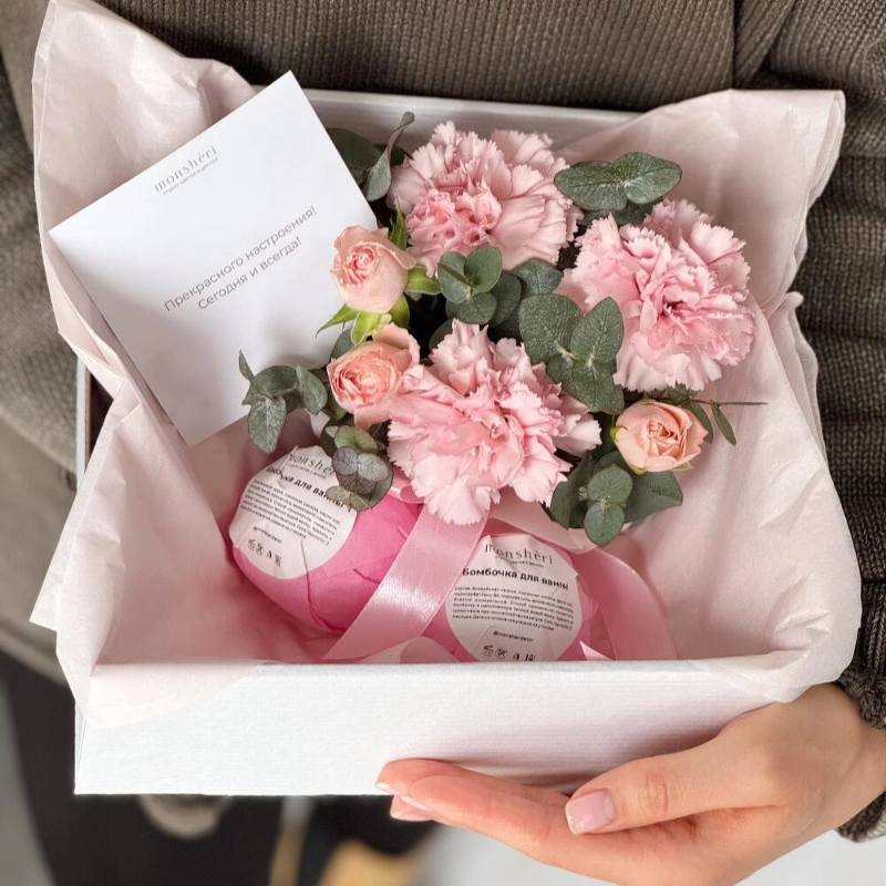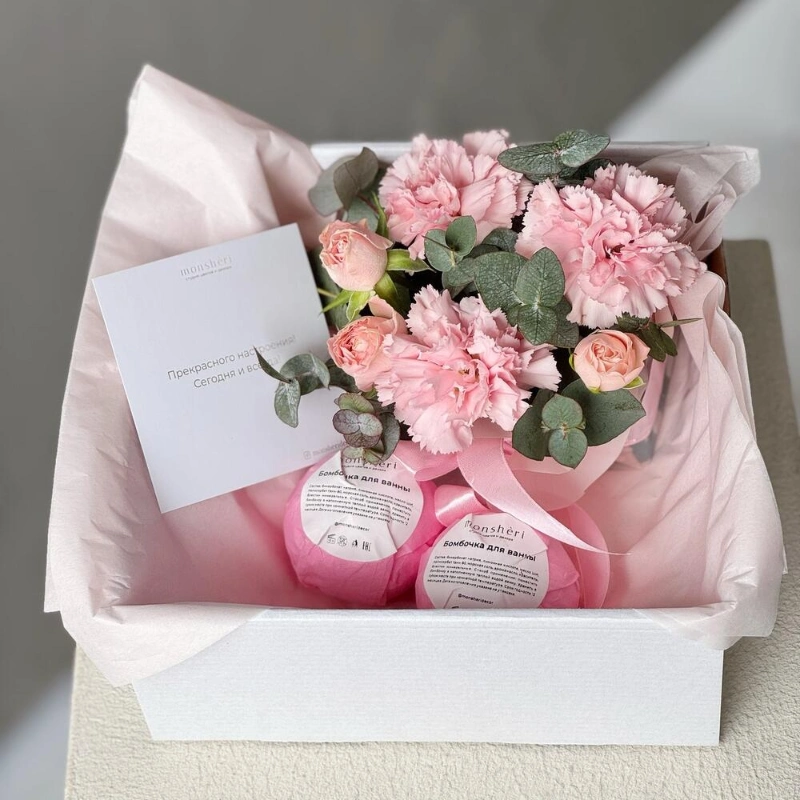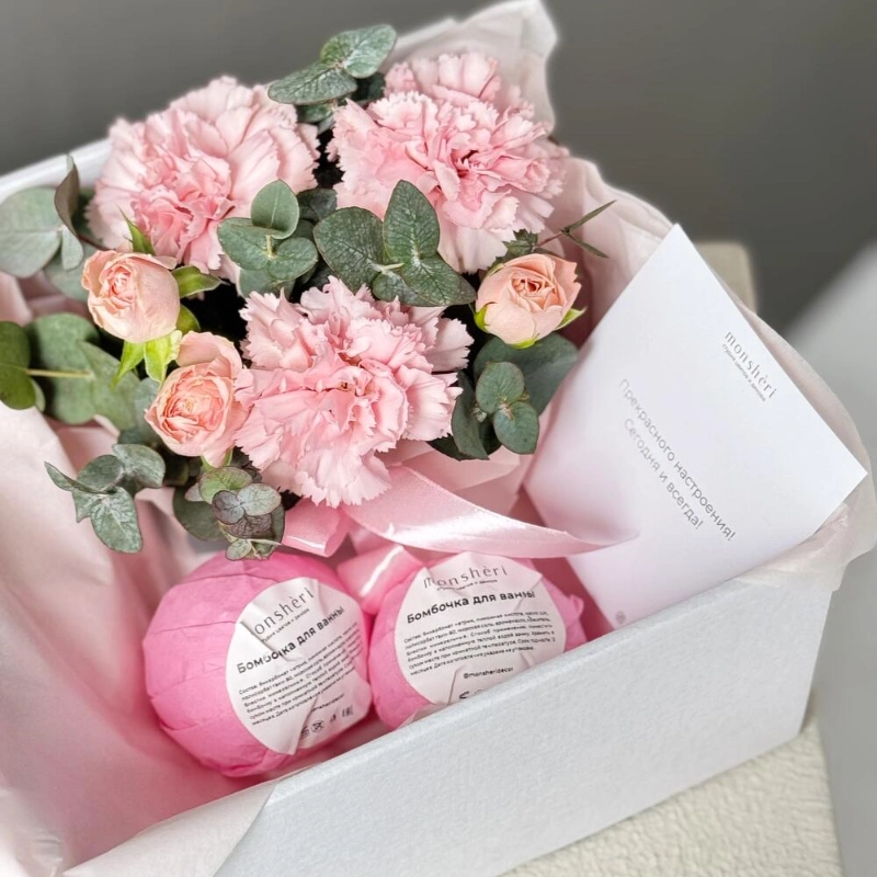 Подарочный набор с бомбочками для ванн и цветочной композицией