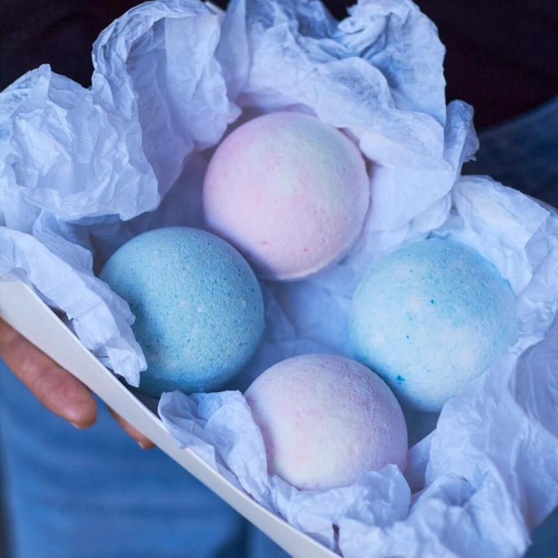 Бокс с бомбочками розово-голубой 4 шт в наборе