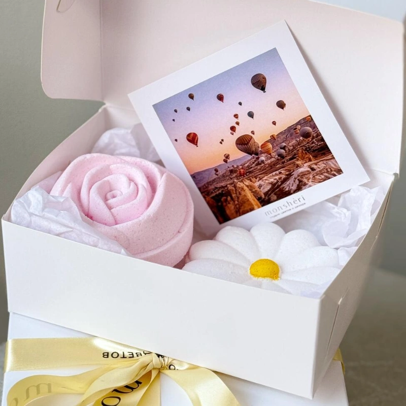 Подарочный бокс с бомбочками: ромашка и роза